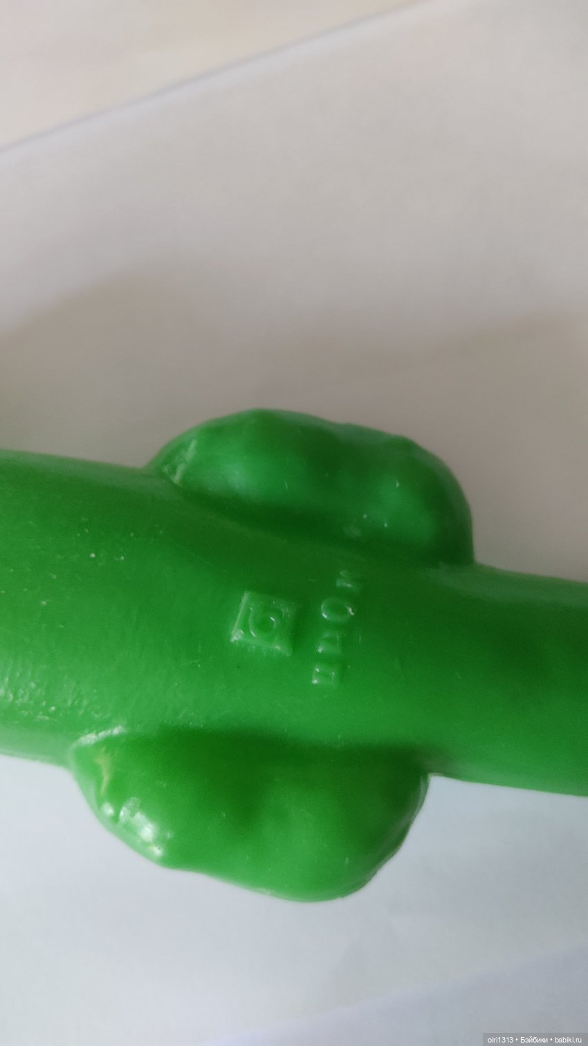 А вот это клеймо Ростовского завода более позднее. С таким клеймом встречается очень много игрушек, в том числе и собачка Кнопка.