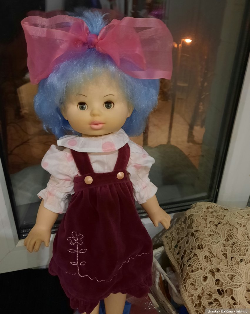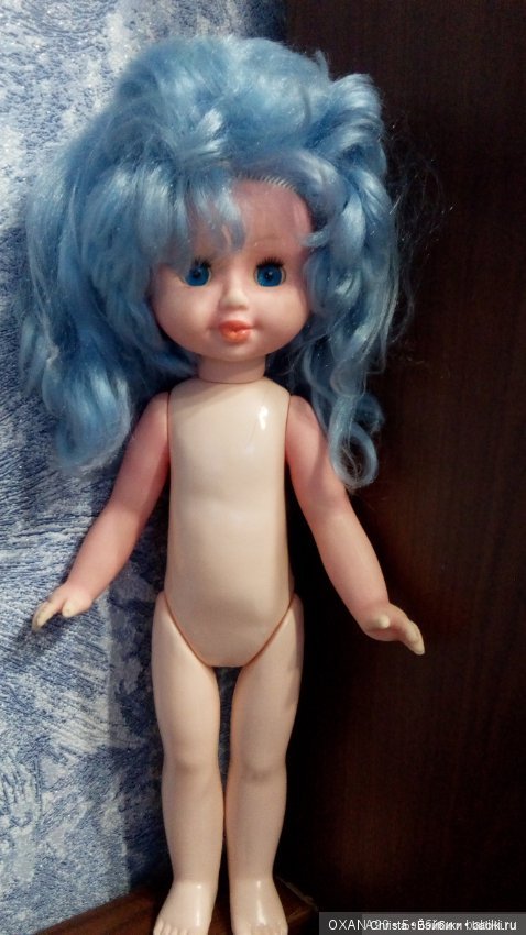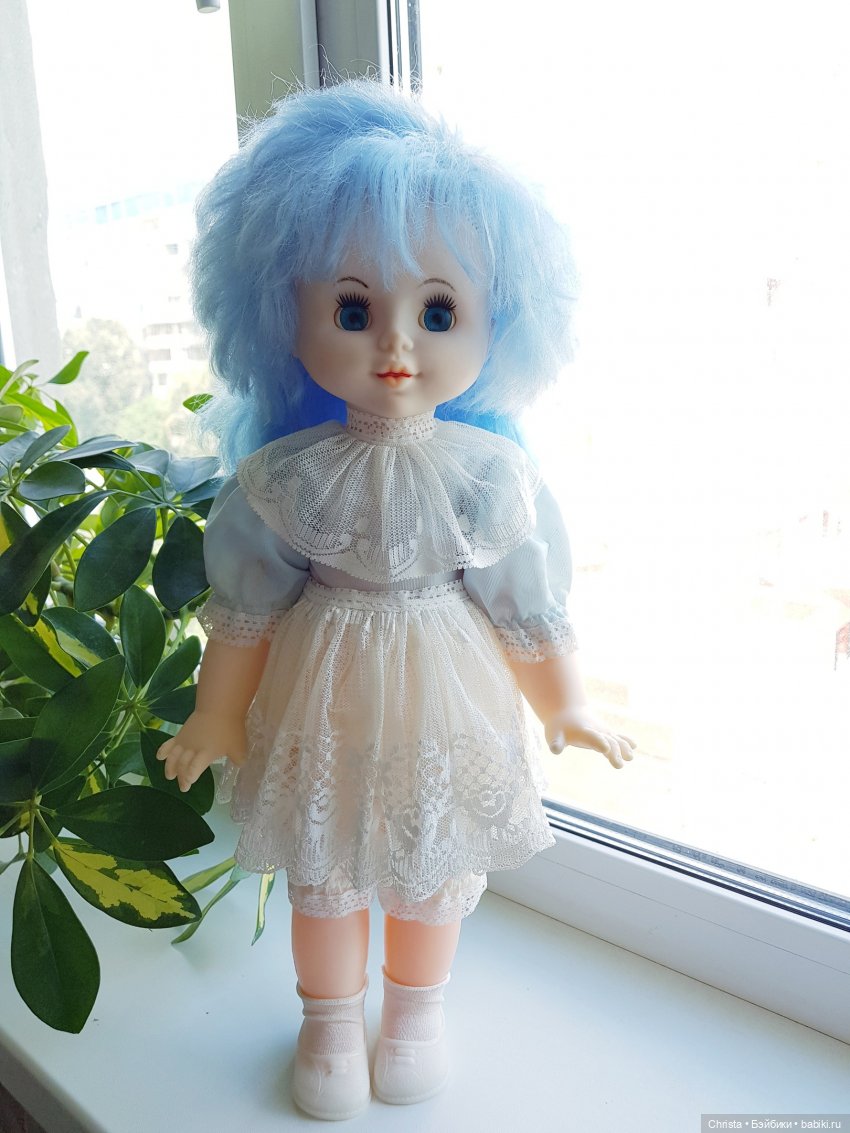 Всем прекрасного настроения🌞🌝Советские куклы-это ни разу не моё.В моём детстве у меня были только ГДРочки всякие разные, а из наших целлулоидный голыш ОХК и несколько Шуриков-Алёнок.Поэтому стала искать информацию про эту голубоволоску.На ловца и зверь-сегодня увидела тут топик Нади oriole про Жень фабрики Кругозор.Понятненько, значит у меня эта Женя и есть.Ну, Мальвина-так Мальвина.Не было их у меня в детстве-так пусть хоть сейчас поживёт.А привезла я её осенью с дачи-долго там валялась на 3м нежилом этаже в коробках со старыми девчачьими игрушками.Видок у неё был, мягко говоря, не очень:((Мне даже странным это показалось: девочки у нас весьма аккуратные и всегда бережно и трепетно относились к своим игрушкам.Они у нас старшие.А вслед за ними были мальчики… А парням лишь бы поиграть в футбол, зачастую всё равно чем((Наверное, и «Женя»(а у девочек она была Мальвина)некоторое время поучаствовала в их мальчишеских шалостях-иначе почему съехал и провалился глаз и столько чумазости по телу?(… Короче, куклу привезла домой и, конечно, отправила к моему любимому безотказному кукольному офтальмологу Надюше NeshkaB.Уж и не вспомню уже сколько кукольных душ в её руках прозрело, похорошело и вообще ожило)))Надя просто творит чудеса!)Покажу фото «до»и «после».