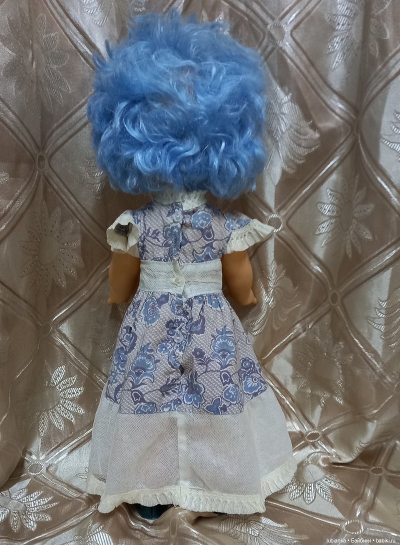Все мы с вами знаем, что у каждой куклы своя судьба, свой характер.Кем была эта до того, как её отнесли на молочную кухню?.. У моих девочек она пожила Мальвиной… Потом побывала в мальчуковых играх не знаю кем или чем… Теперь Надя её вылечила.И что ещё интересно: оказывается это никакая не Мальвина! Кстати волосы на фото не такие ярко-голубые, как наяву.Как выяснилось, это -кукла «Метелица»фабрики Кругозор 60-70е гг.И имела она от рождения накидочку из сеточки и диадемку-снежинку! Но вычитала я про это уже после того, как приодела её и причесала.Эх, если она у меня приживётся(в чём я не очень то пока уверенна),-то точно будет потом Метелицей)))Ботиночек пока не нашлось.Принимайте такой, какая есть)