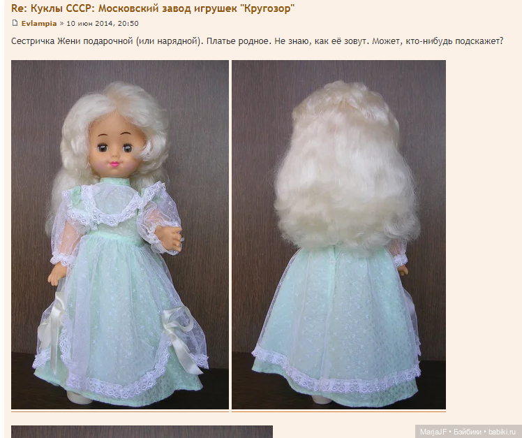 И тут я вспомнила! У меня же есть такая кукла! И я ведь ее когда- то тоже опознала, как Женю Кругозор! )) А теперь вот и не знаю, право…