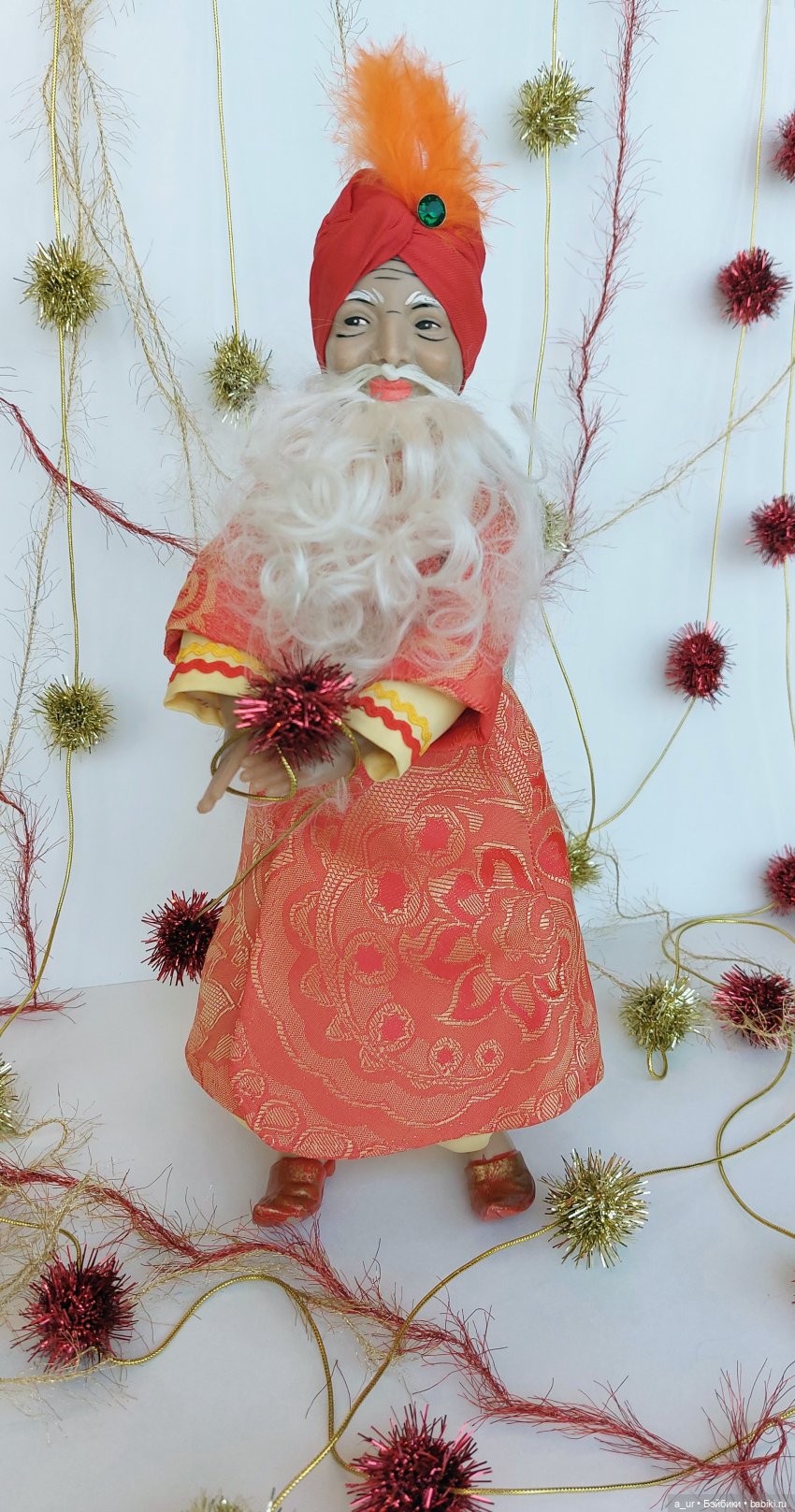 Привет, вам, любители кукол. Недавно мне посчастливилось стать обладателем Старика Хоттабыча, которого я нашла на Авито за очень хорошую стоимость в очень несимпатичном состоянии. Правда, аутентичная одежда- комбинезон и халат с чалмой, были в отличной сохранности.