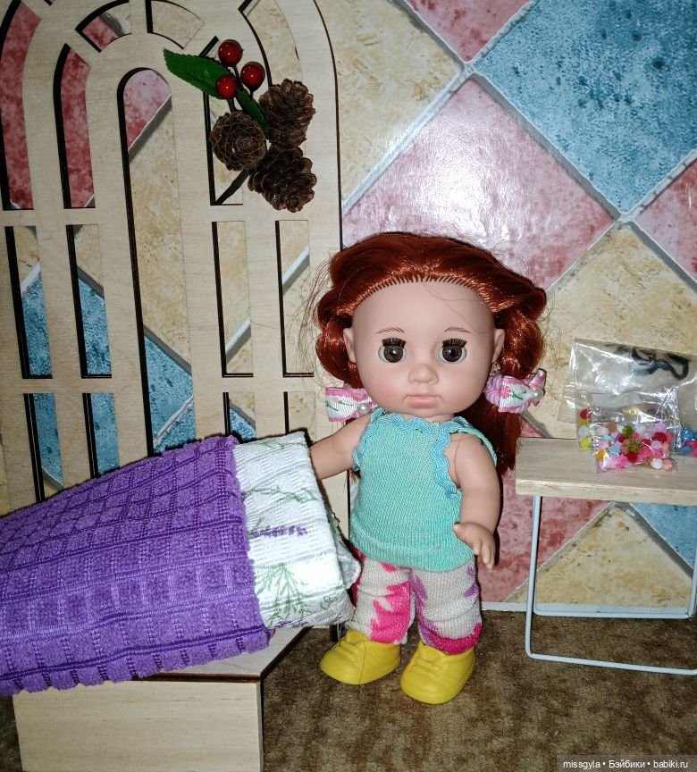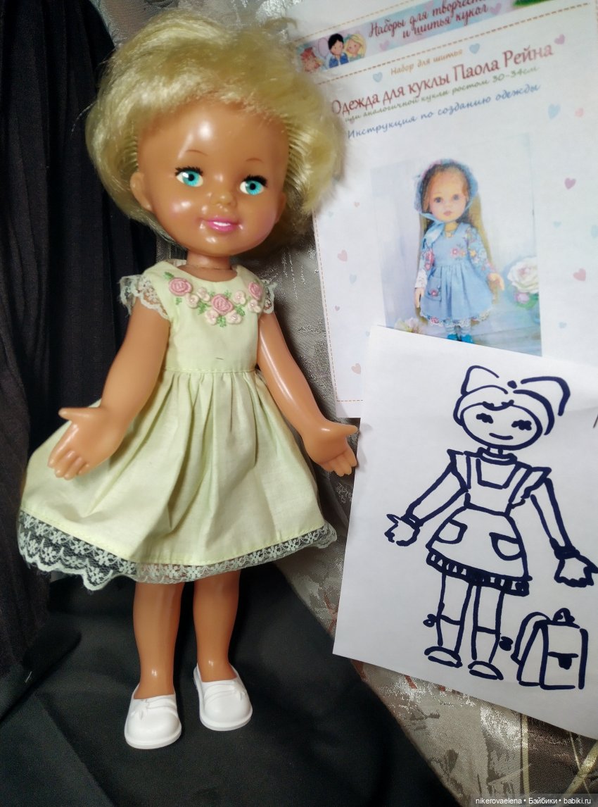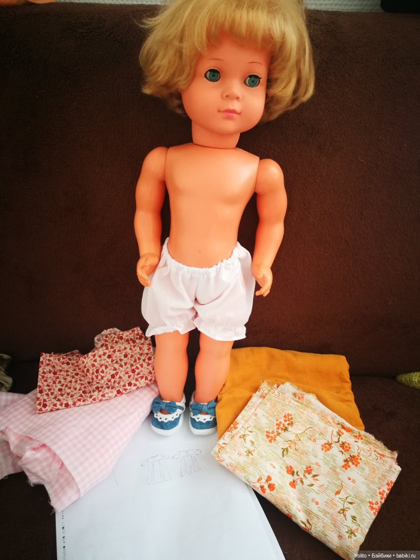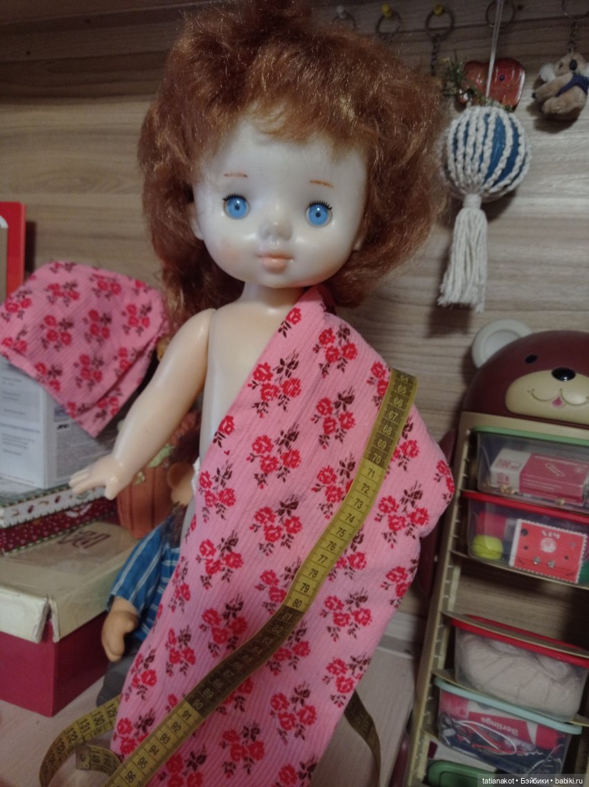 Надо ещё выкройку делать. Она меньше, чем целлулоидная. От целлулоидной платье ей велико! Вот незнаю, успею ли…