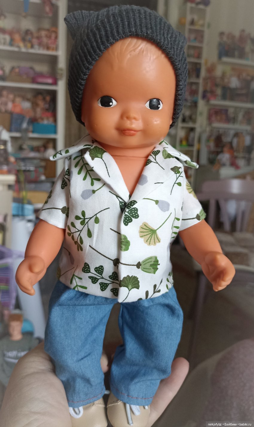Итак. Нашлась третья и последняя из старых маминых кукол. По сравнению с большими — он реально пупсик — сантиметров 25. Из хорошего — на нем практически не было грязи. Из плохого — у него темные пятна на личике ((( он весь, включая туловище сделан из довольно мягкой резины.