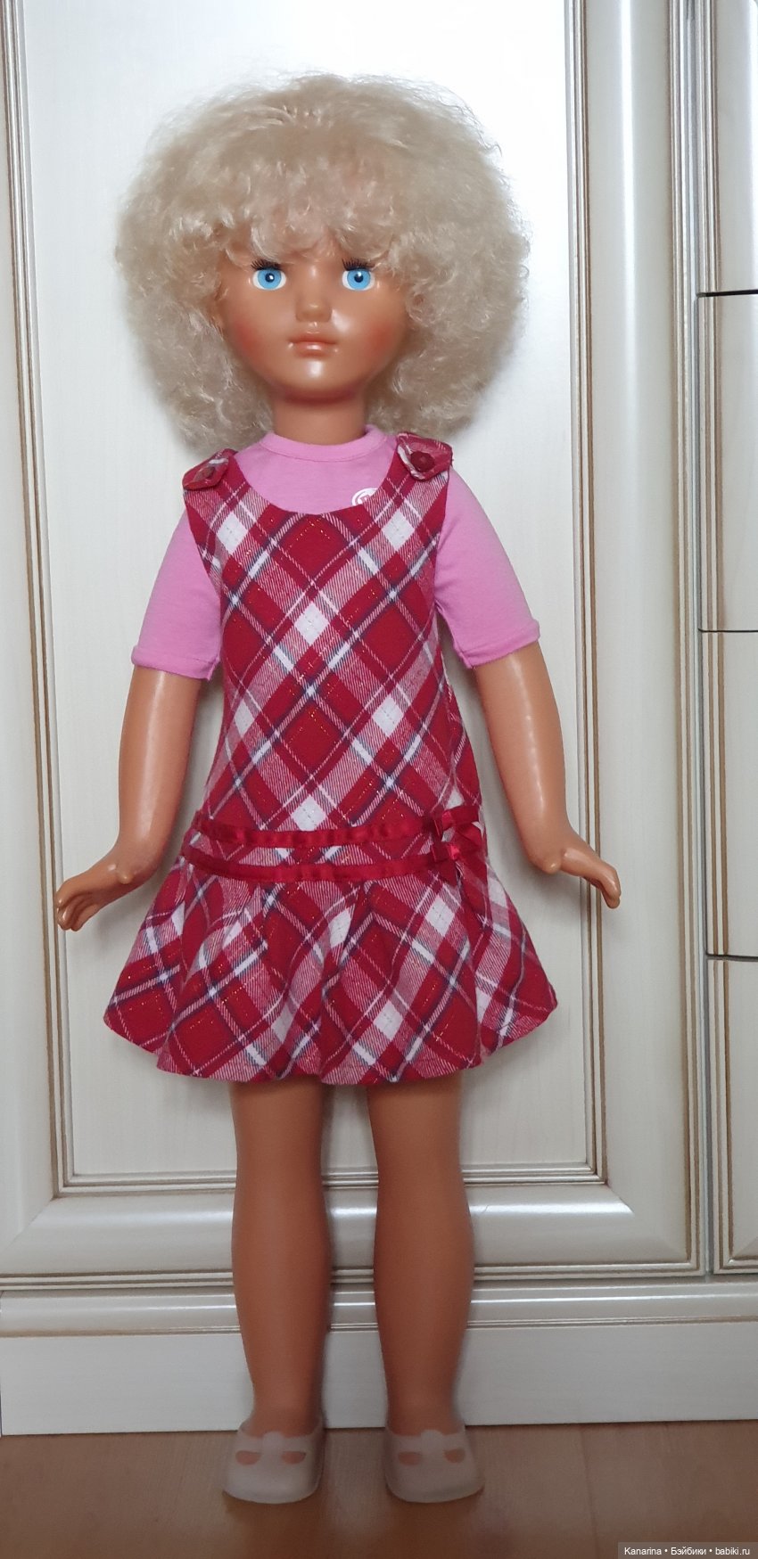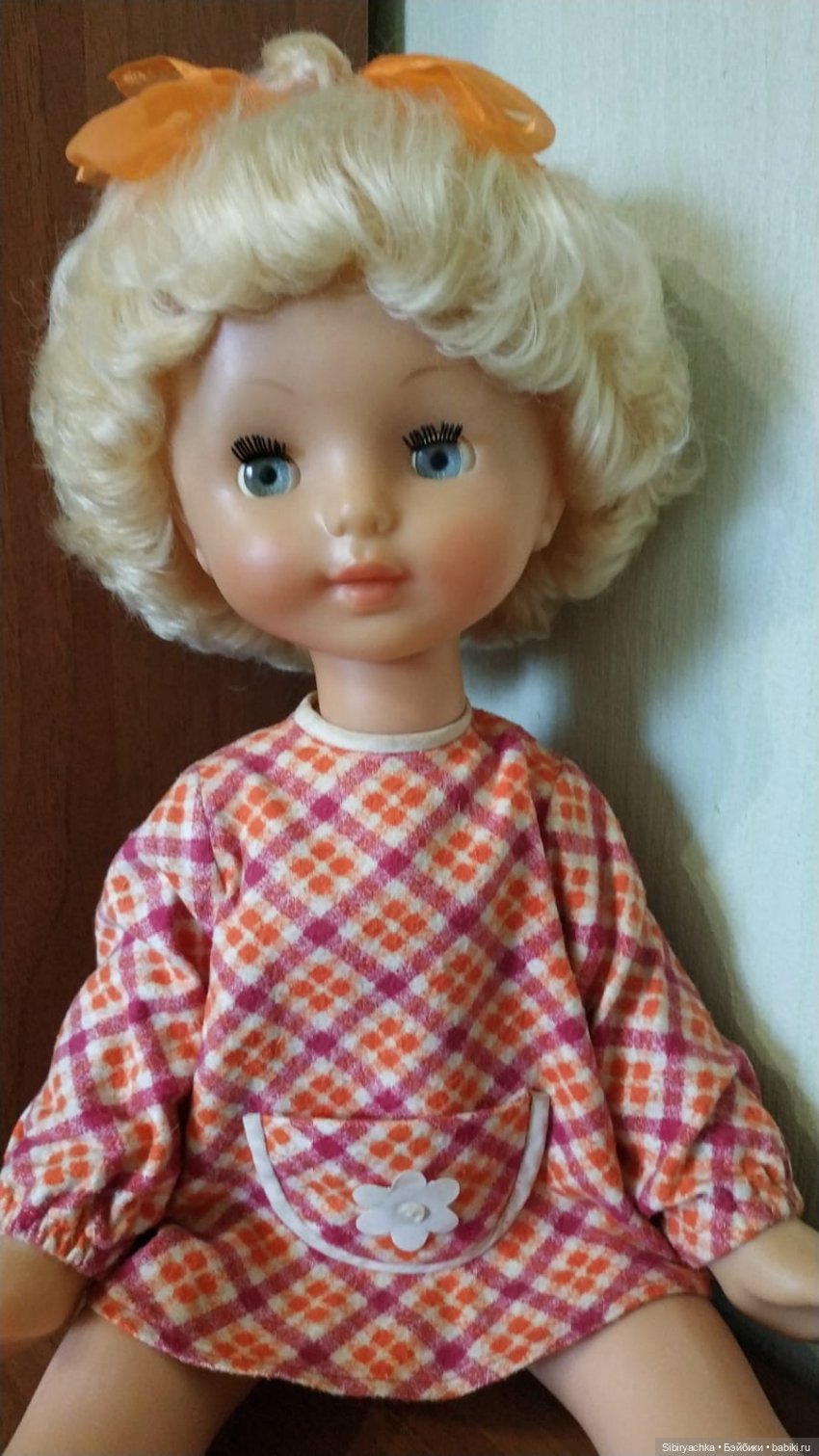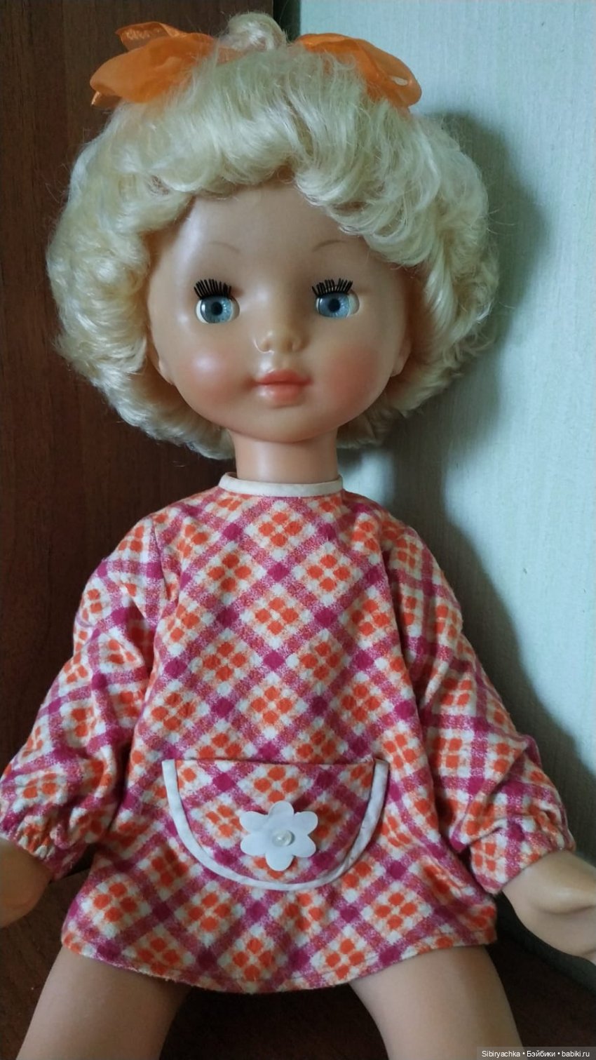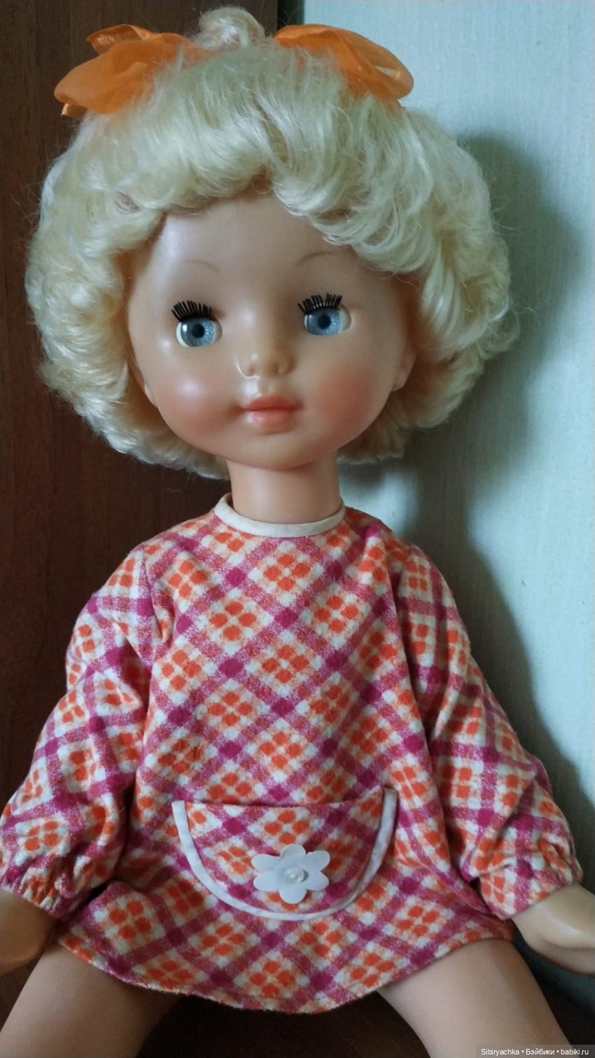 Куколка полностью в родном наряде: фланелевое платье (у меня в садике было такое же) с кармашком, хлопчатобумажные трусики и кожаные сапожки. Сохранность куклы просто потрясающая. Берёшь её и вспоминаешь собственное детство, где всё было прекрасным и замечательным!