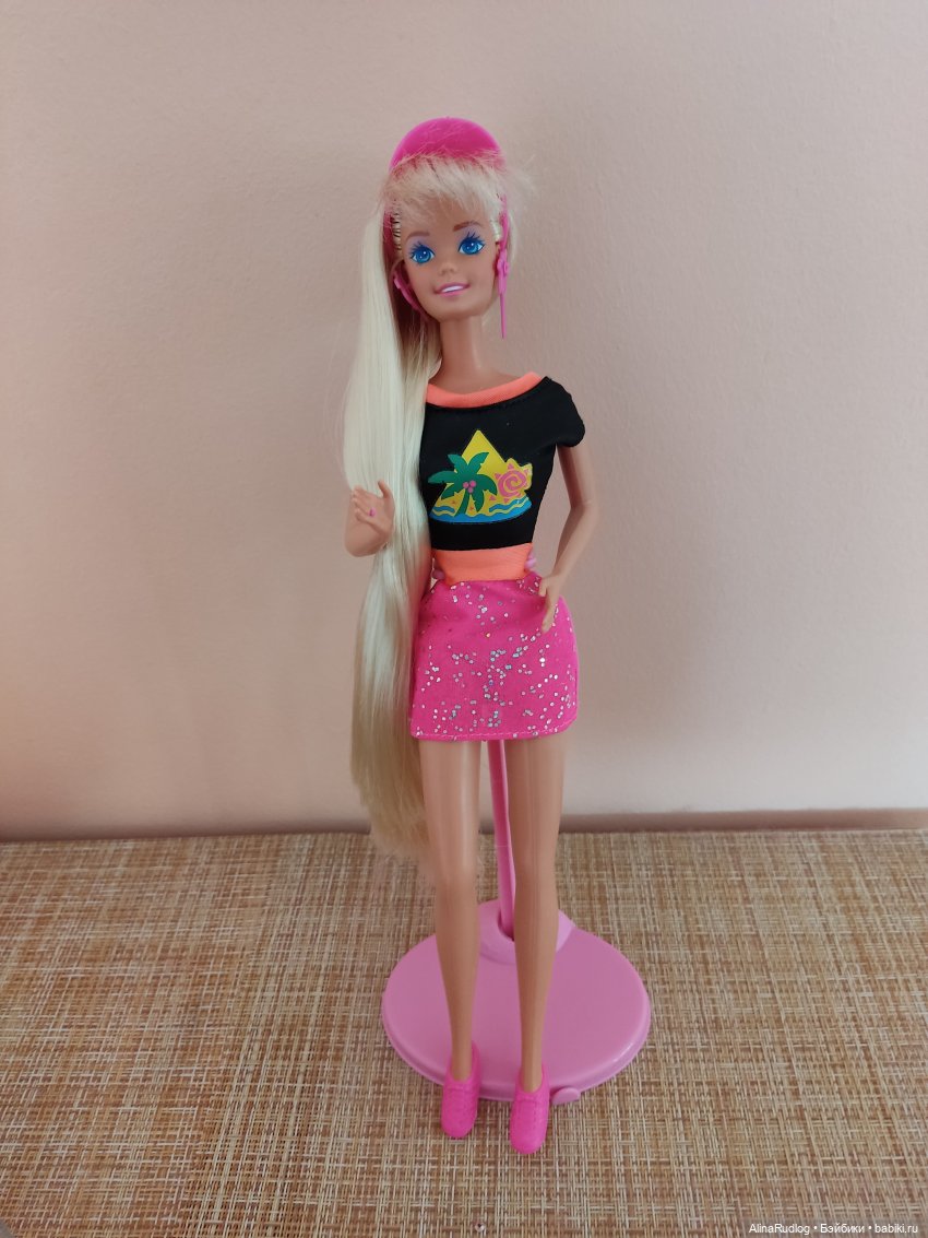 Я пока ещё не нашла ту самую куклу из моего детства, фото нет, а помню её крайне смутно. У нее были голубые волосы и потрясающее красное платье. Она тоже была куклой из детского садика, и ее даже можно было попросить домой на выходные, помню мой восторг