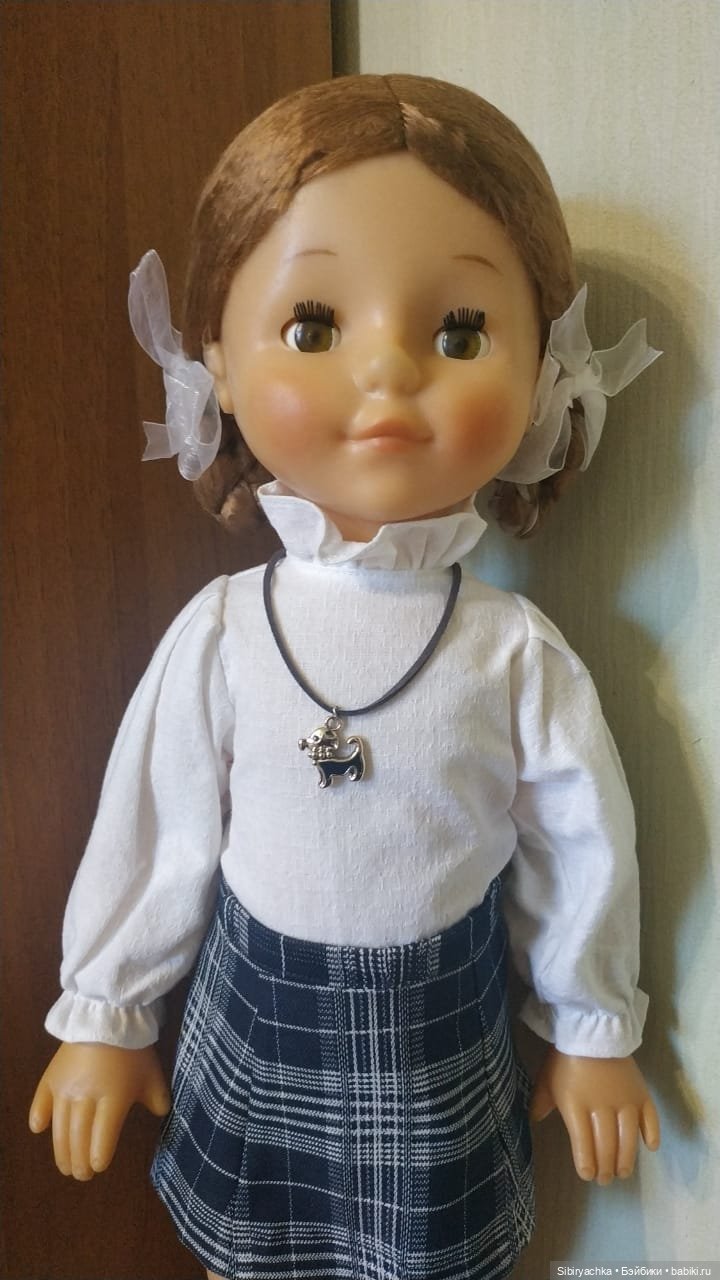 а куколка у вас на фото такая счастливая!!! И бантики белоснежные и школьная форма! Видимо она в этом году пошла в 1 класс!!!