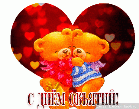 Здравствуйте, дорогие друзья!Сегодня 21 января — Международный день объятий! Поздравляю Вас и ваших близких с этим замечательным праздником! Желаю Вам всего самого-самого доброго! Мира, тепла и добра Вам и вашим семьям! Чтобы отпраздновать этот день, достаточно подойти к любимому человеку, обнять его, прижать к себе покрепче, услышать биение его сердца и тихонько шепнуть «я люблю тебя!» После этого любой из нас будет летать как на крыльях! Недаром говорят, что любовь окрыляет, от любви у человека за спиной вырастают крылья!