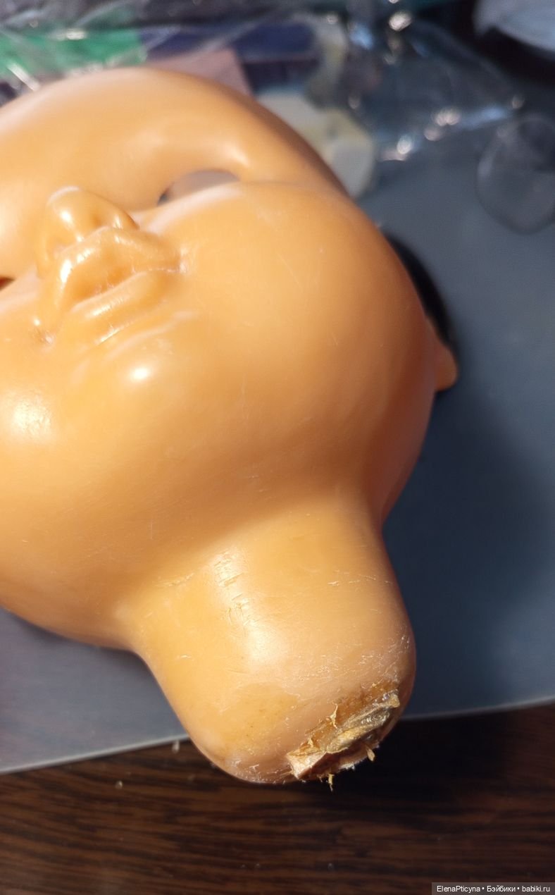 Затем предстояла работа с лицом. Недаром пословица гласит «глаза бояться, а руки делают». Мне было страшно браться за работу с кукольным лицом при помощи наждачной бумаги первый раз в жизни. Муж снабдил меня наждаком разного размера и сказал обрабатывать лицо куклы энергичными движениями, начиная от самого грубого вида бумаги и заканчивая самым мелким. Постепенно царапины сглаживались, кожа девочки становилась ровнее. В один день я решила, закончить с наждачными работами и обработать лицо при помощи шерстяной тряпочки, чтобы придать ему блеск. Честно говоря, мейк куклам я делать ещё не пробовала, поэтому решила пока оставить лицо Даши без макияжа.