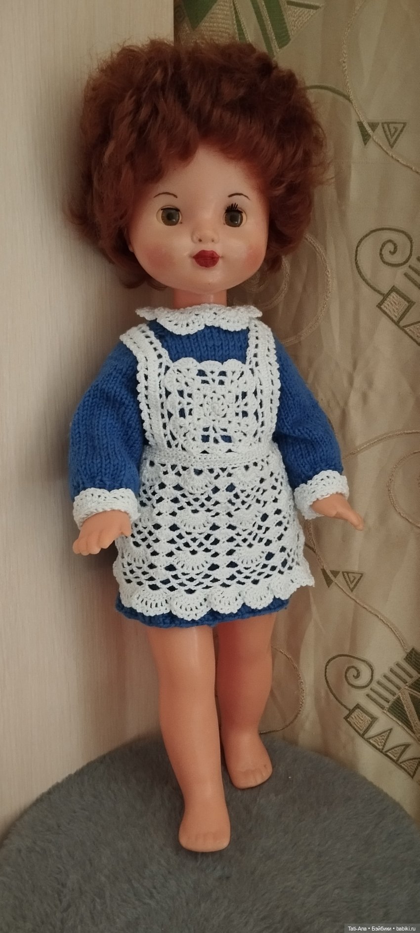 Валя позвала в гости сестрёнку Алёнку (других кукол данной фабрики у меня в коллекции нет). У Алёнки тоже полностью родной наряд, состоящий из трусиков, блузки и сарафана.