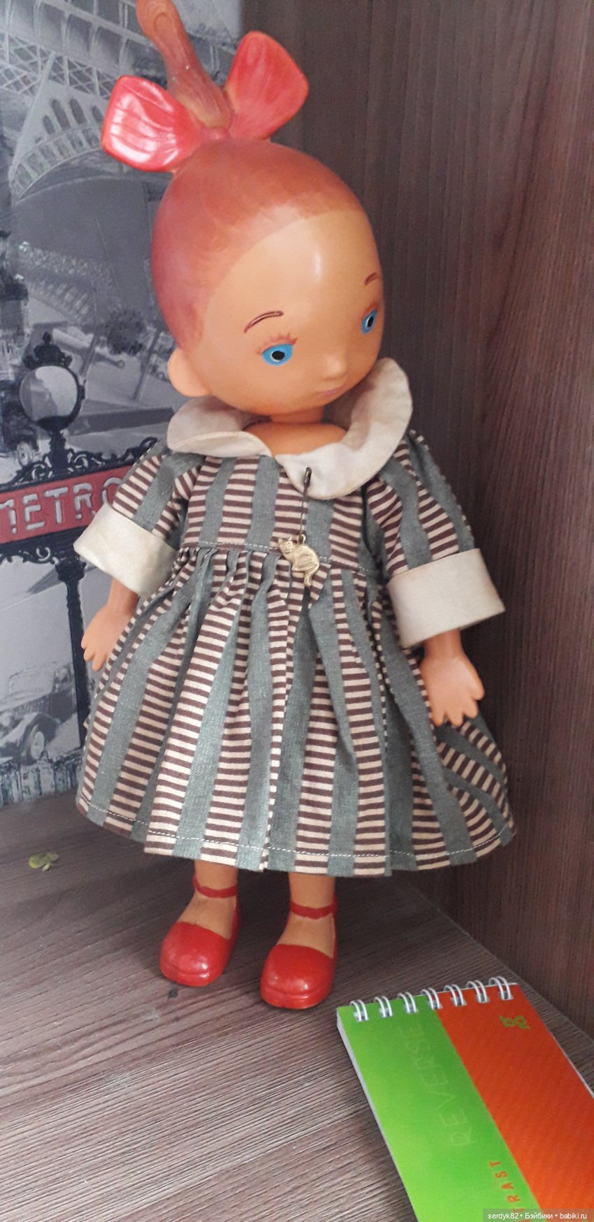 Леночку отмыла, перетянула ей резинки, заклеила трещину на руке. Платье, в котором она была, бережно постирала, починила. Оно, кажется, из старой занавески. Я всегда умиляюсь находчивости советских мам и какой-то особенной душевности этих винтажных одежек.