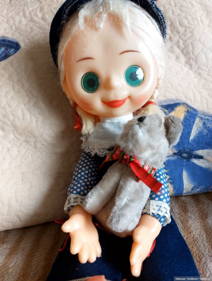 Приехала куколка в родной одежде и нетронутая детскими играми от временем только обувь выцвела и набика пришла в негодность.