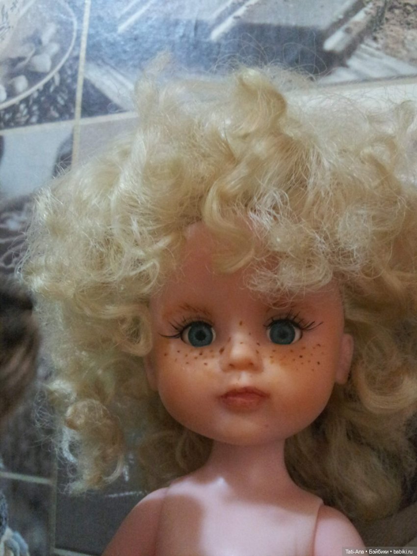 Я её увидела на мешке и сразу влюбилась. Тогда я совершенно не разбиралась в кукольных фабриках. Для меня это было абсолютно не важно. Мне понравилось её очаровательное личико с выразительными зелёными глазами, которые непонятным образом двигались из стороны в сторону. Создавалось впечатление, что кукла абсолютно живая и следит за мной! В детстве куклы, которые у меня были, могли только открывать и закрывать глаза.