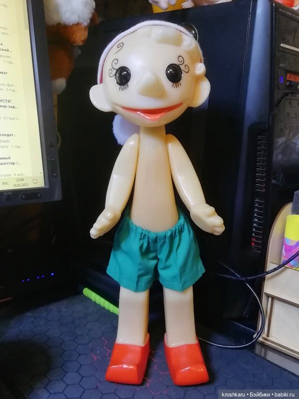 Ни одной, ни другой не было у меня в детстве.Синеглазку думаю знают многие любители советских кукол, она потаённая мечта не только у меня.Приехала она ко мне не из европейской страны, скорее всего её кто то когда то купил на сувенир и увёз за границу. А Буратино нашёлся в России, куклы очень хотели попасть ко мне видимо, потому что объявления висели на них долго, на Синеглазку я посмотрела очень понравилась и подумала… нет не для тебя, дорого… но регулярно заходила смотреть не купили ли. Попросила продавца сделать скидку, сделал. но очень маленькую и я не купила, но опять заходила любоваться на неё.И вдруг… бац и продавец делает скидку нааамного ниже, было немного неожиданно и сразу же нажала кнопочку… ты едешь ко мне))