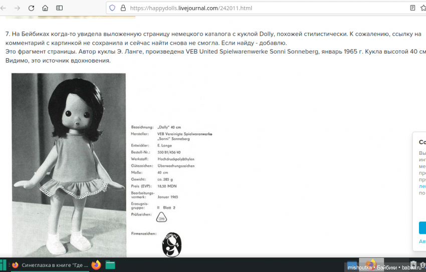 Прочитав немного расстроилась, так как хотелось, чтобы эта куколка была нашей, если это можете понять, но судя по году выпуска… не знаю.