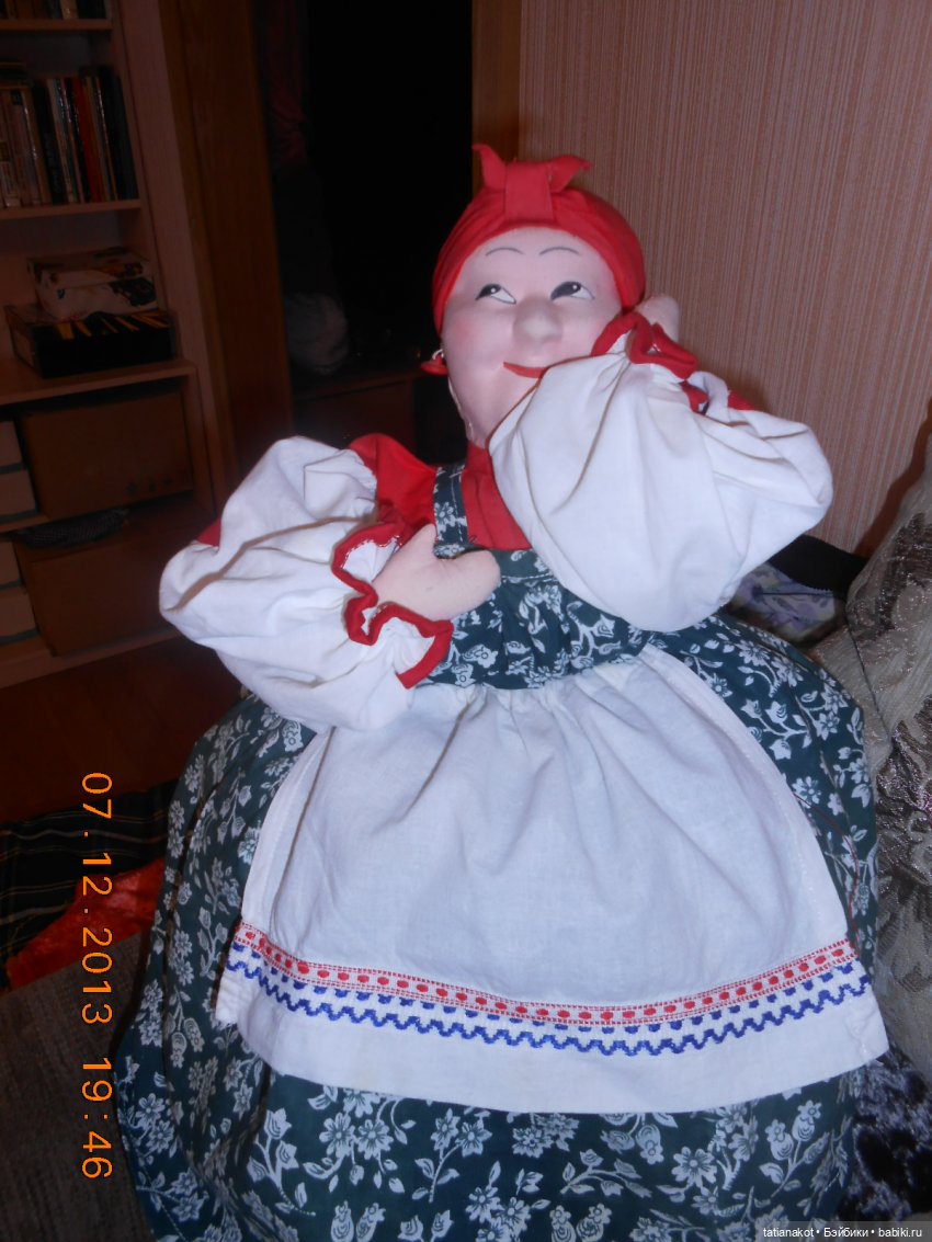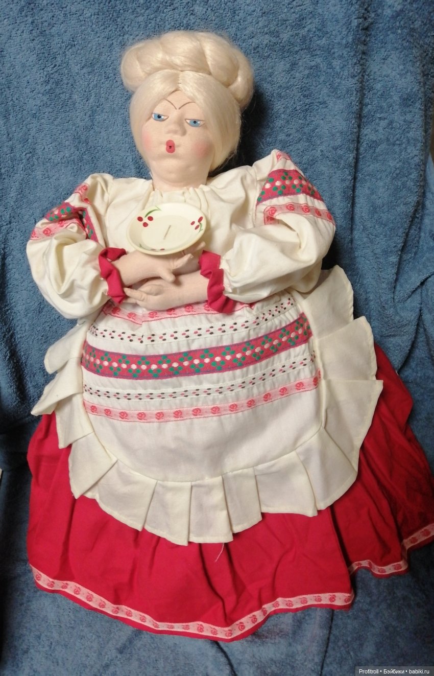 Добрый день! Сегодня хочу познакомить вас со своей скромной коллекцией чайниц. Когда только начинала собирать кукол — эта дама была моей мечтой, естественно не смогла пройти мимо и я её купила. Знакомьтесь, моя первая кукла на чайник, хотя скорее всего на самовар, судя по её габаритам — Татьяна Борисовна