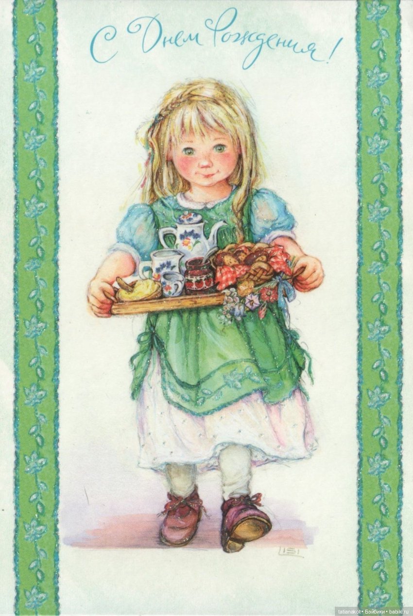 Открыточки чудо! Где-то у меня в коробке с открыточками тоже была такая, с фарфоровой куклой. В начале 2000-х когда я уже открыто играла в куклы и говорила об этом не стесняясь, мне кто-то из родных такую открытку подарили, чем очень порадовали!