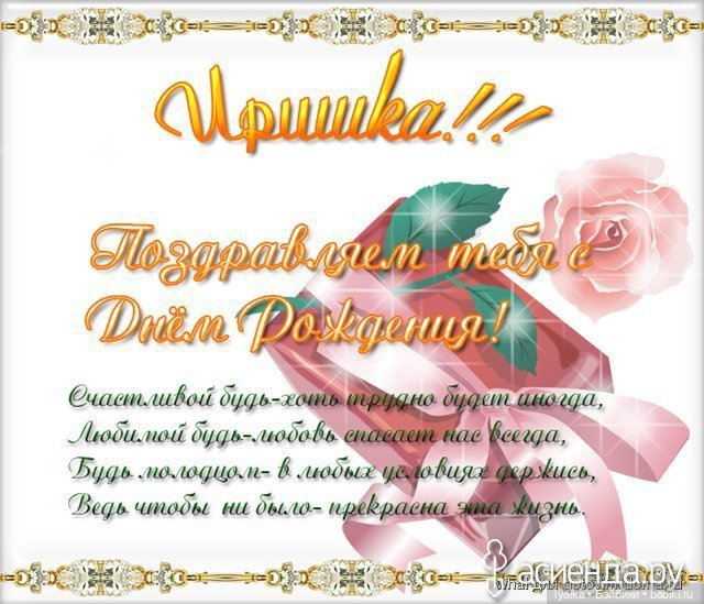 Милая Ирина! С днем рождения вас и вашу замечательную Василису! Солнца, мира и добра! Пусть сбываются мечты и надежды, пусть прекрасным будет отдых! Новых вам впечатлений, встреч, покоя и радости!