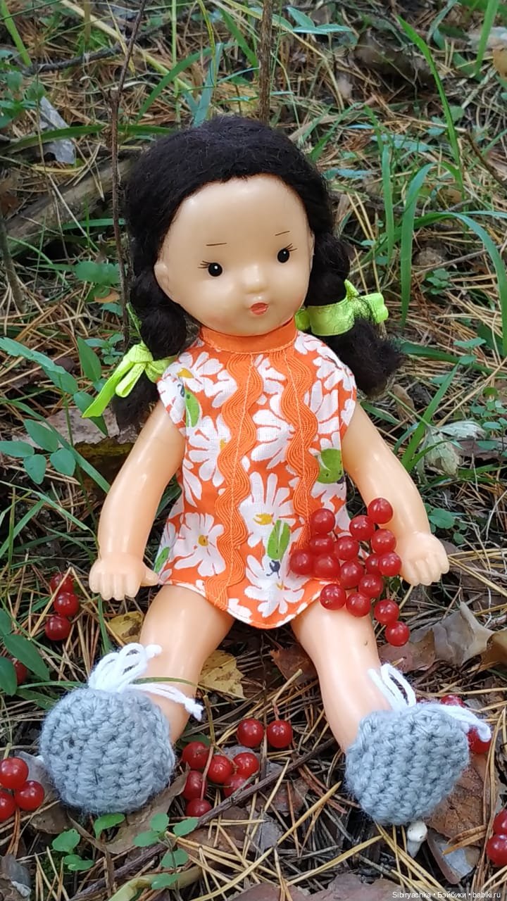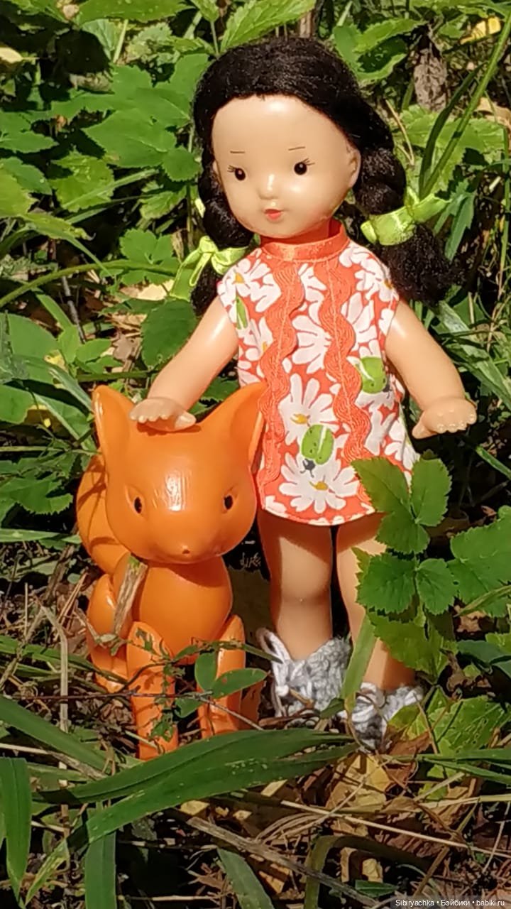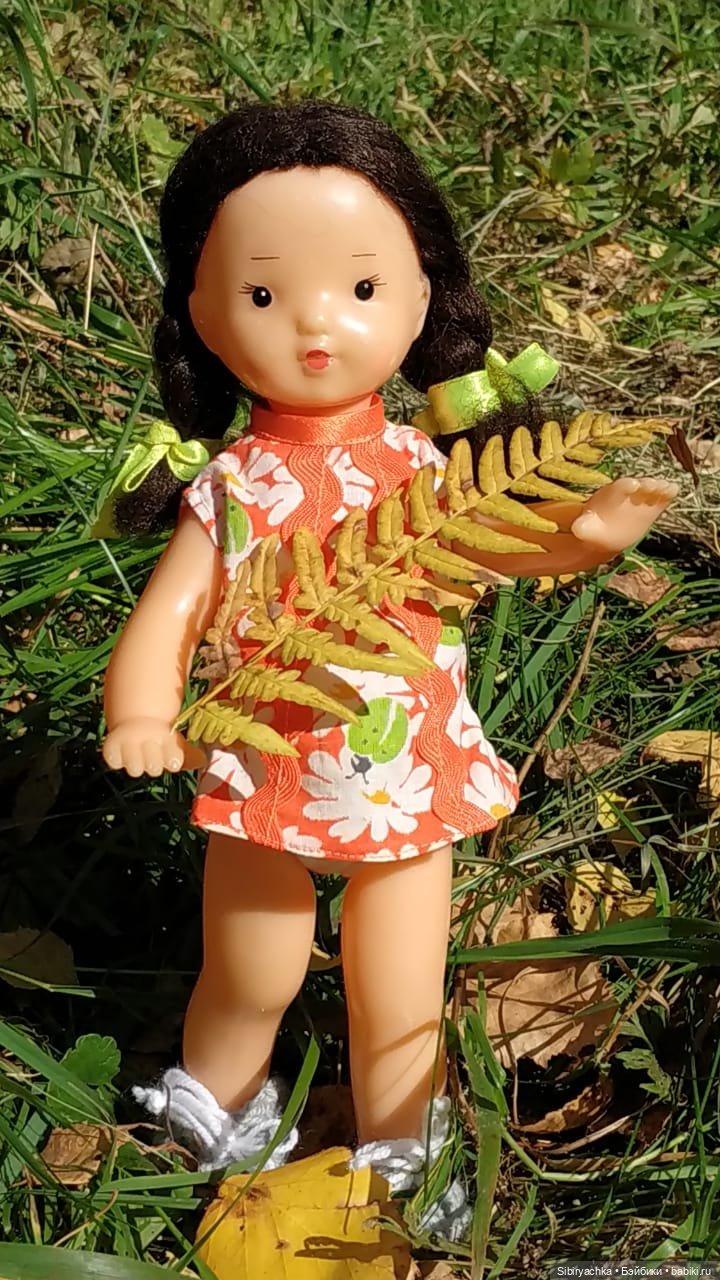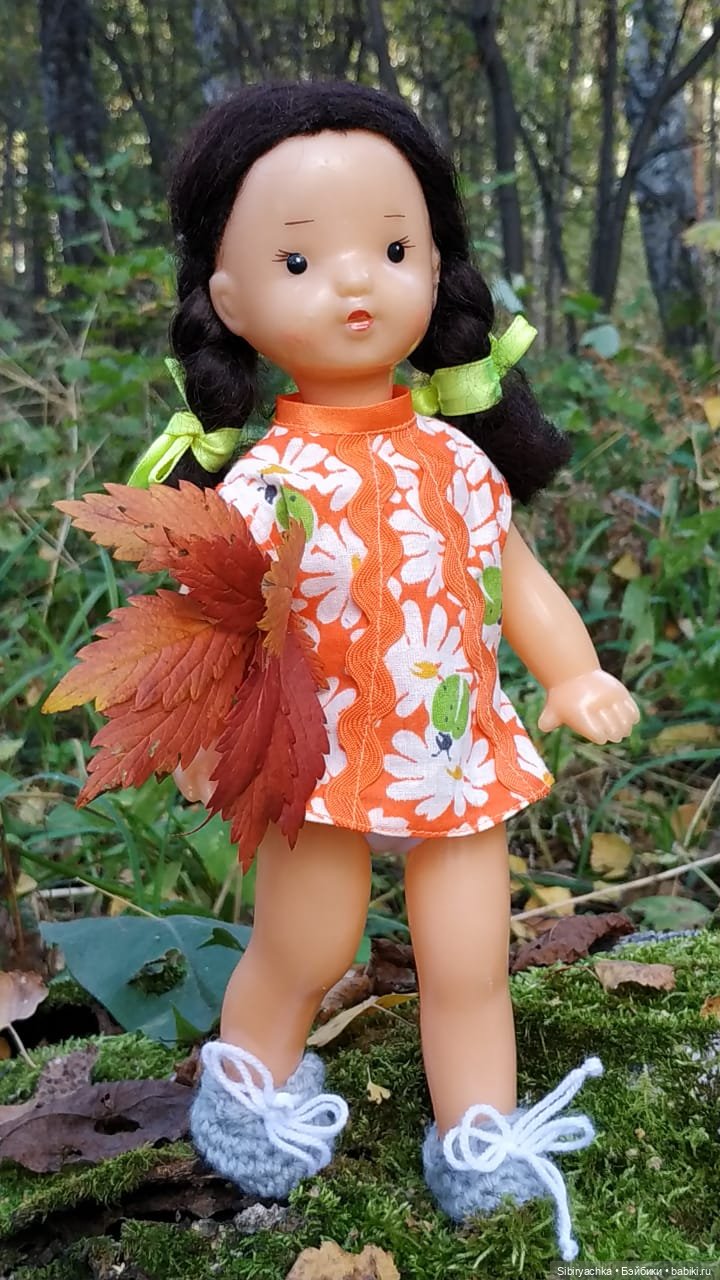 Юля действительно очень интересная девочка. Всего 28 см ростом, самая маленькая из советских в моей коллекции, ещё и сродным паричком.