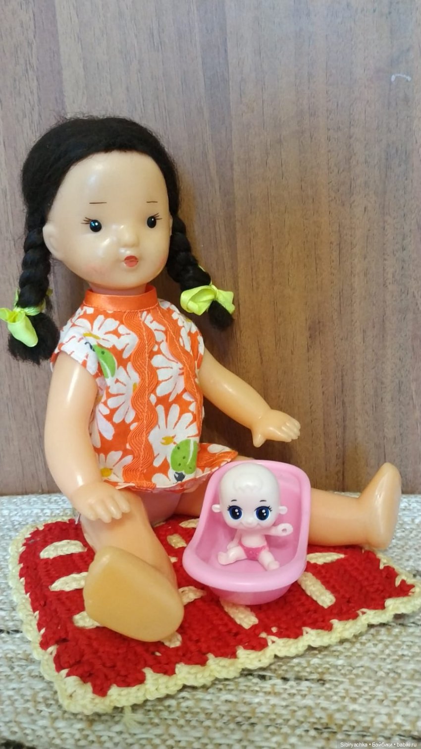 За один день Юля стала старшей сестрой огромного малыша и хозяйкой трёх чудесных пупсиков. Нелёгкая доля ответственности легла на её детские плечи! Я думаю, Юля справится, ведь в советское время дети рано становились самостоятельными.