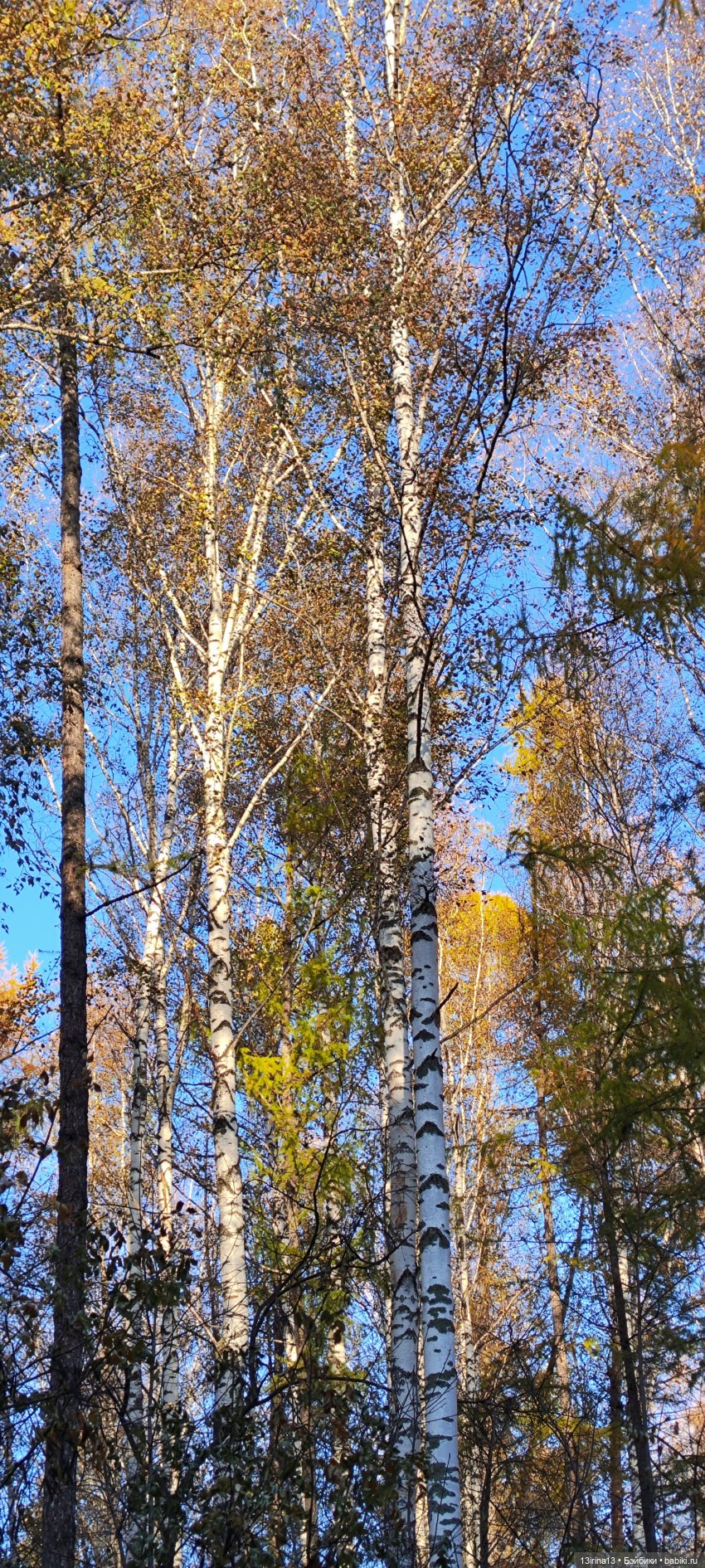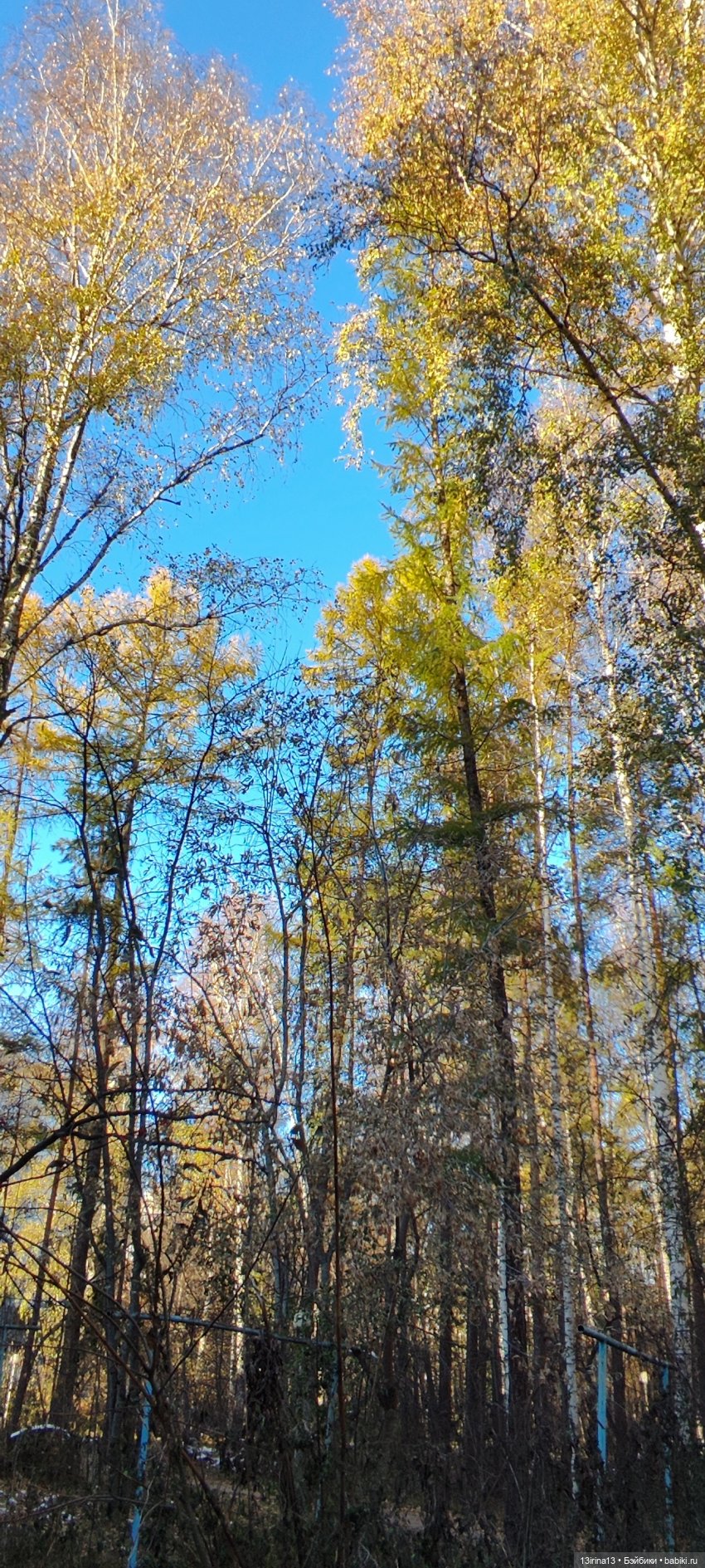 Синее небо и золотые иголочки лиственницы.