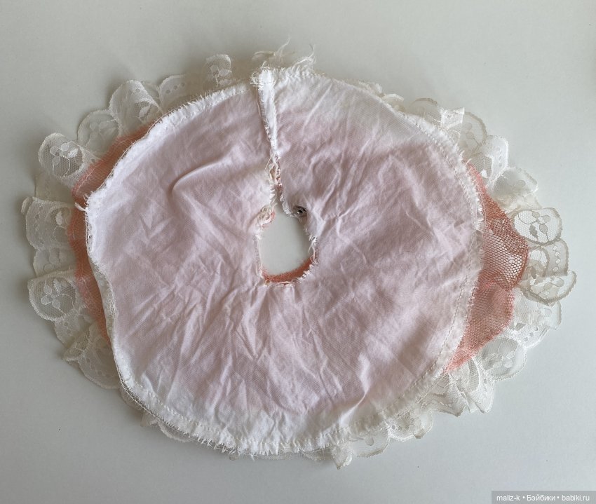 И отдельно юбку с изнанки. Она трех слойная: 2 слоя сетка с кружевом, причем нижний слой скроен по форме как элипс. И третий слой подклад.