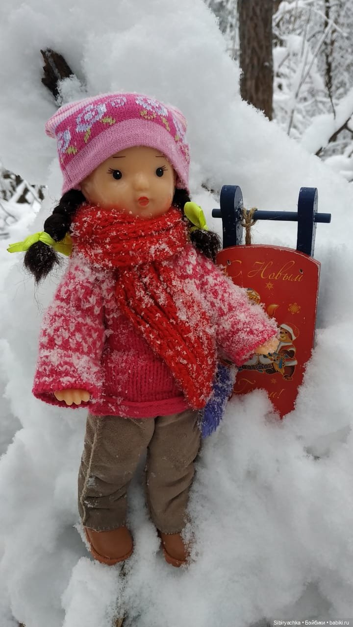 Сегодня Юляшка встала с утра пораньше и никак не могла дождаться, когда же мы отправимся на прогулку в наш любимый лес. Ей очень хотелось прогуляться в новом тёплом свитере, который мы закончили шить позавчера. А ещё ей предстояло испытать в деле настоящие деревянные санки в реальных условиях сибирской зимы.