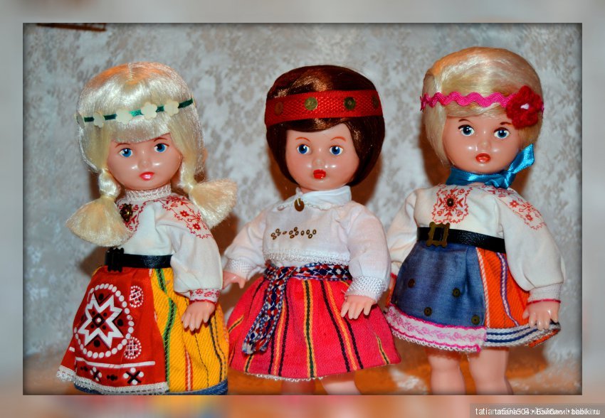 А сейчас смотрю на этих девочек и думаю, что с удовольствием бы свою Тиину подержала в руках, мы бы с ней и наряд сшили подходящий, и место нашли на полочке.