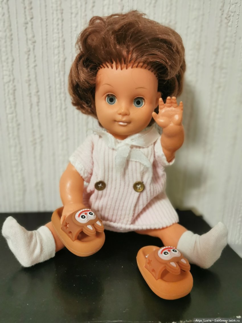 А вот с обувью полный завал у меня для нее, взяла от другой куклы таксебе сделанные на коленке мною, просто учусь еще обувь делать. Вязать то получается классно, но хочется научится и клееную обувку делать. А еще лучше найти того, у кого 3д принтер есть.