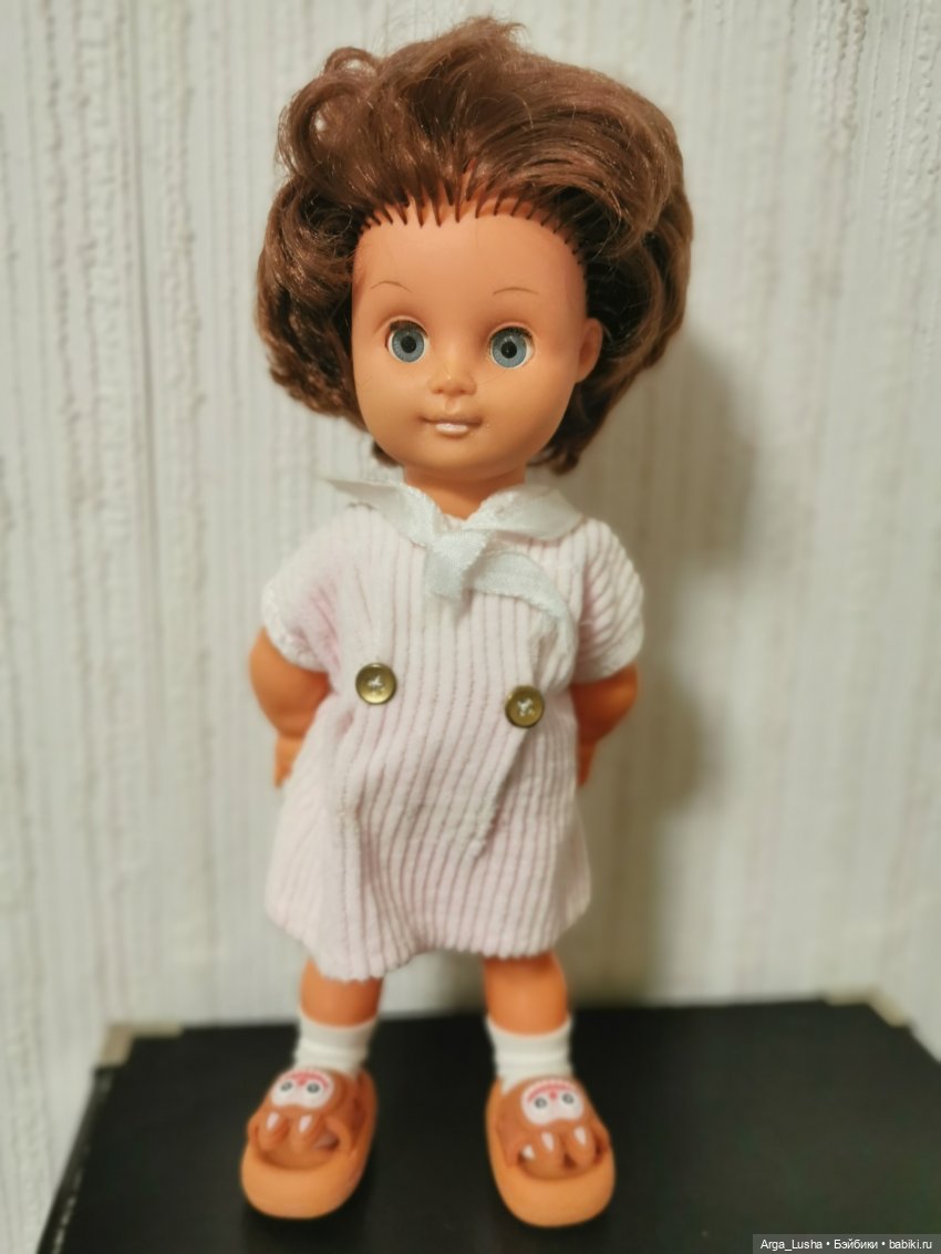 И даже я бы сказала, что ее рельефные волосы мне нравятся больше, чем парички у таких кукол, как-то больше винтажности в ней становится.