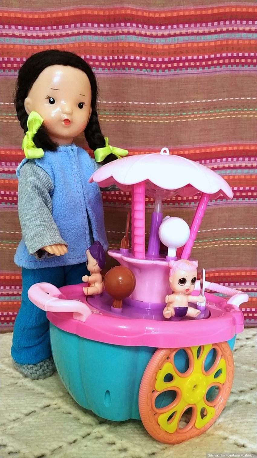 Чудесная тележка со сладостями и очаровательными маленькими куколками.