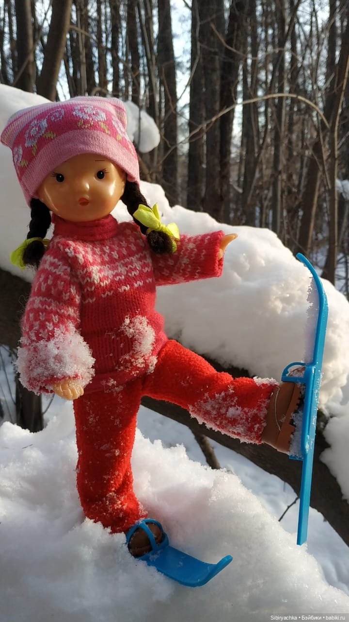 Первые идеальные лыжи готовы, и Юляшка отправилась на свою первую лыжную прогулку.