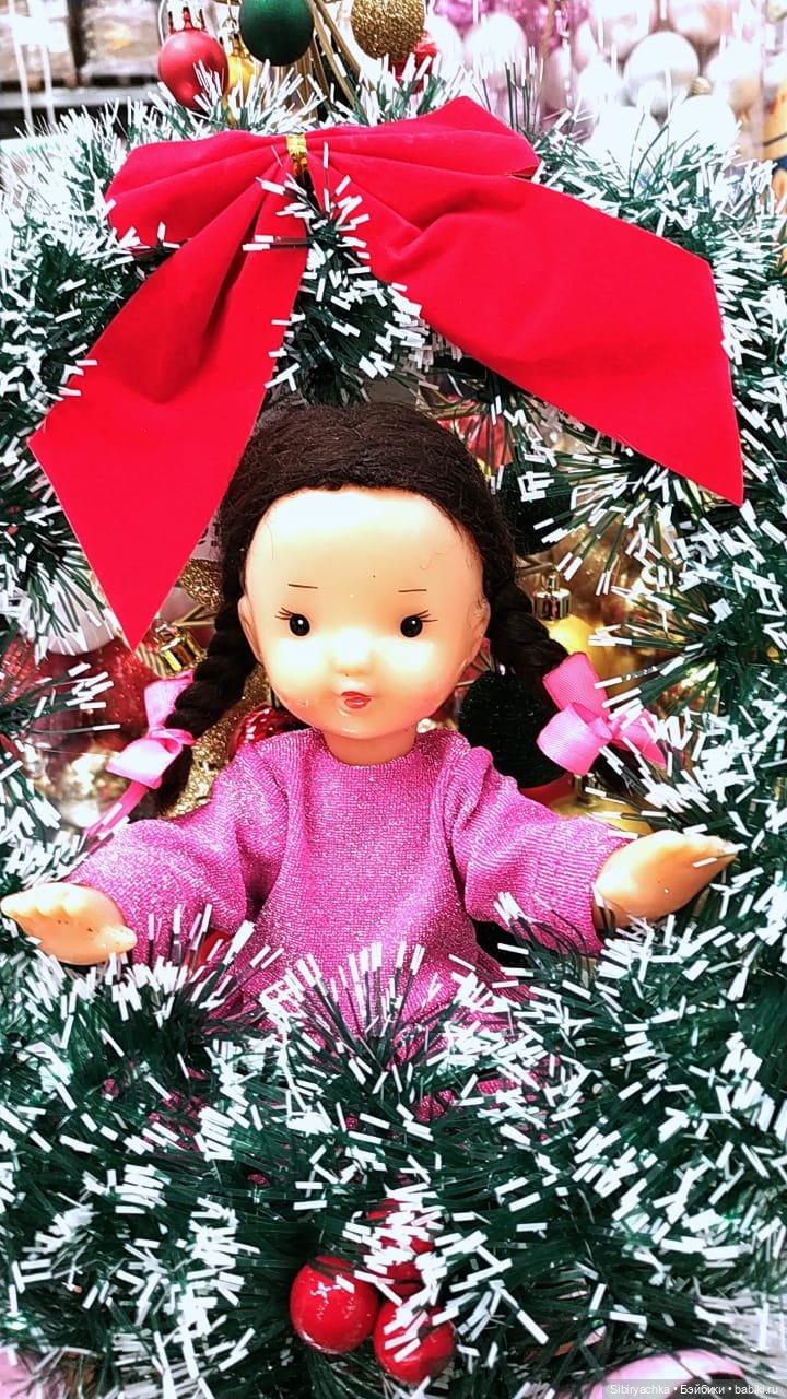 Очень необычная металлическая ёлочка, украшенная шариками, по размеру идеально подходит Юляшке.