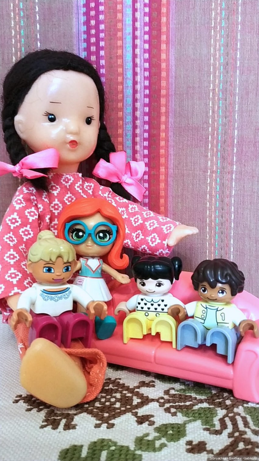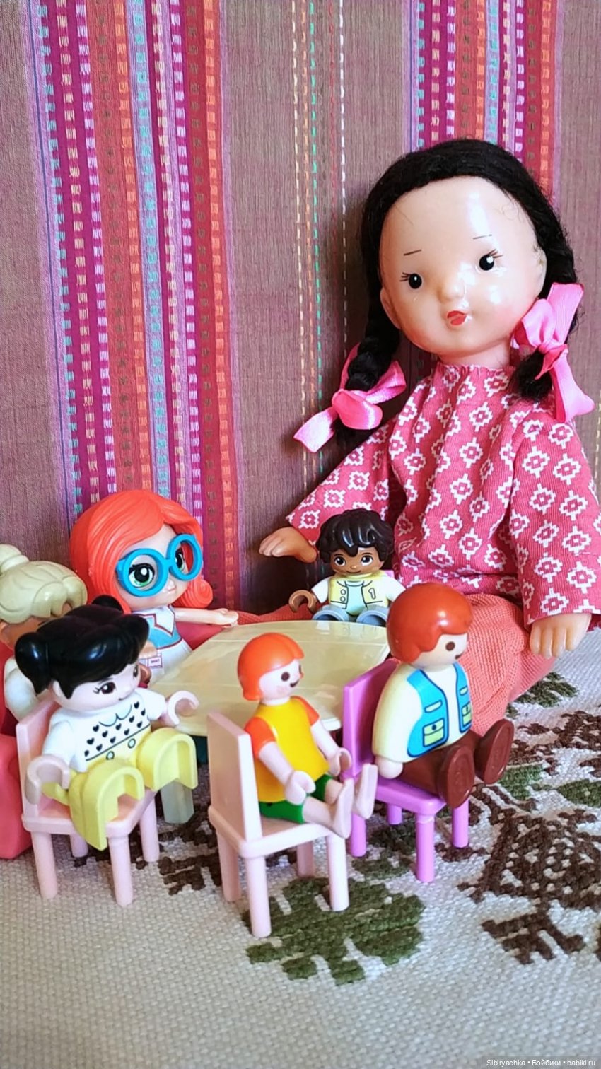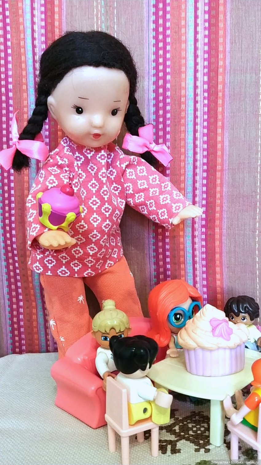 и ещё ни разу не играла в куклы! Представляете себе эту несправедливость! Взрослая тётенька каждый день с упоением играет в куклы, а маленькая девочка ни разу не брала их в руки с момента своего приезда в сентябре!