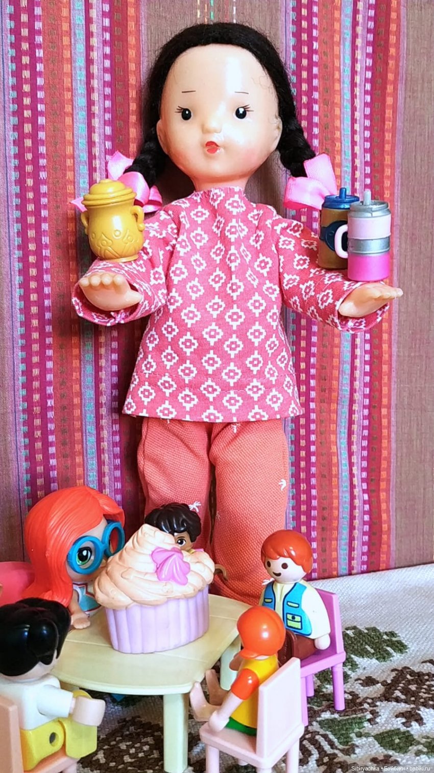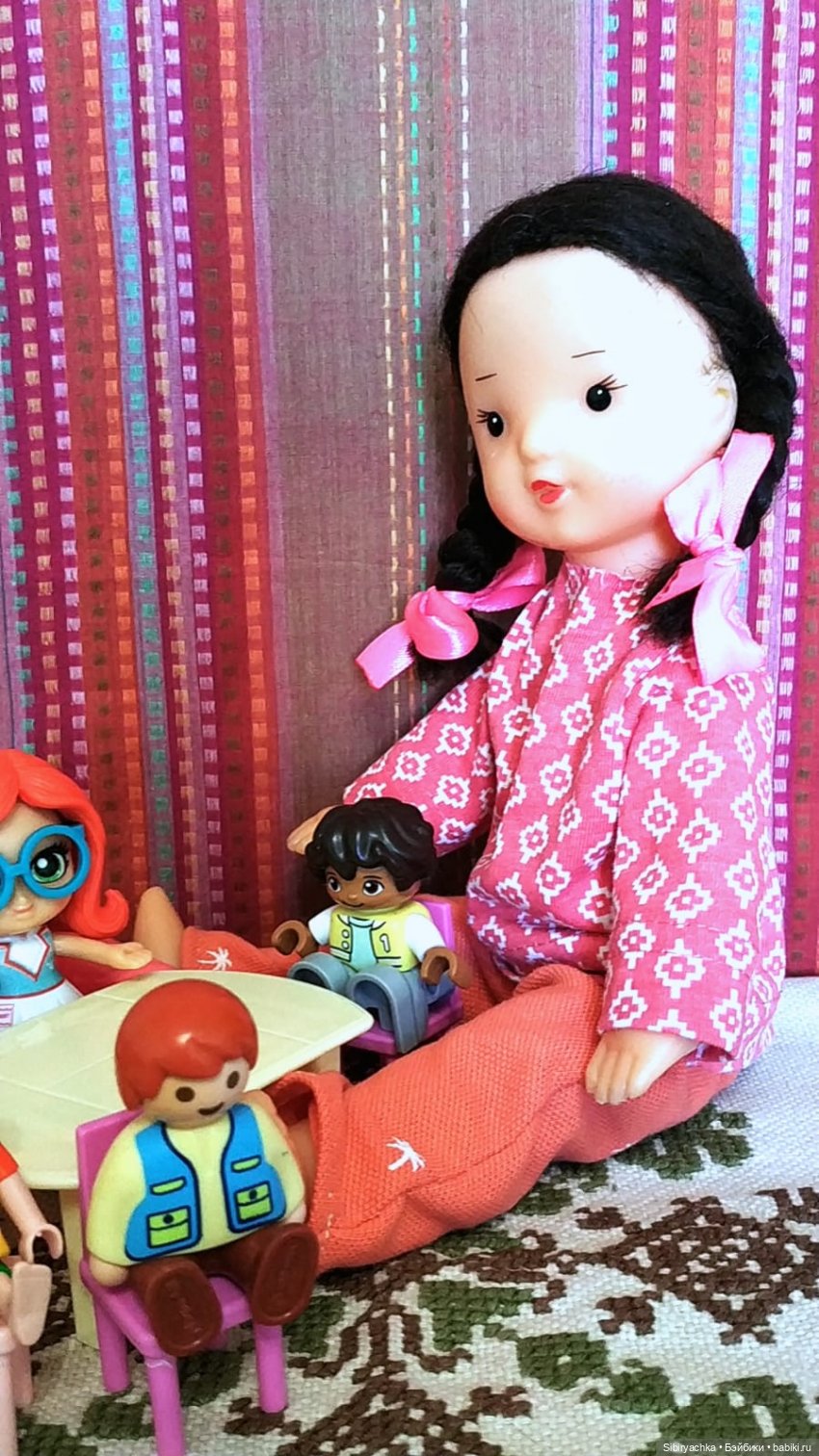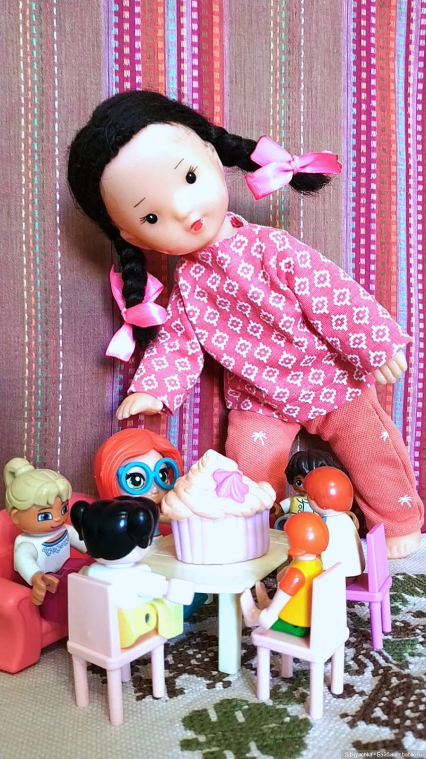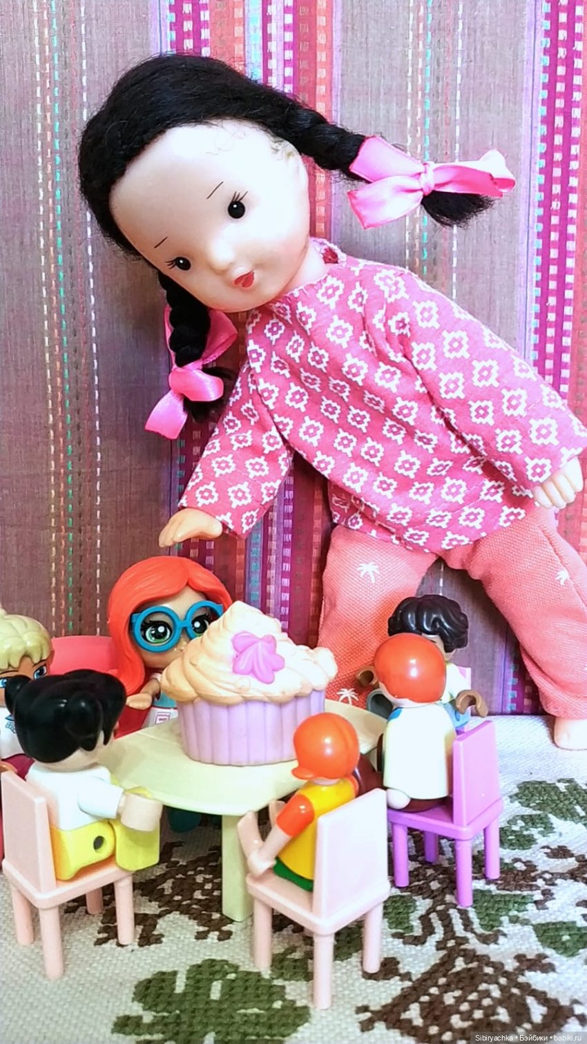 и ещё ни разу не играла в куклы! Представляете себе эту несправедливость! Взрослая тётенька каждый день с упоением играет в куклы, а маленькая девочка ни разу не брала их в руки с момента своего приезда в сентябре!