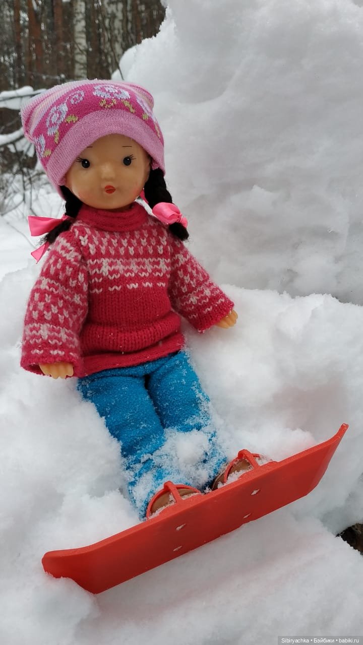 Юляшка вытащила застрявший конец сноуборда и упала на спину…