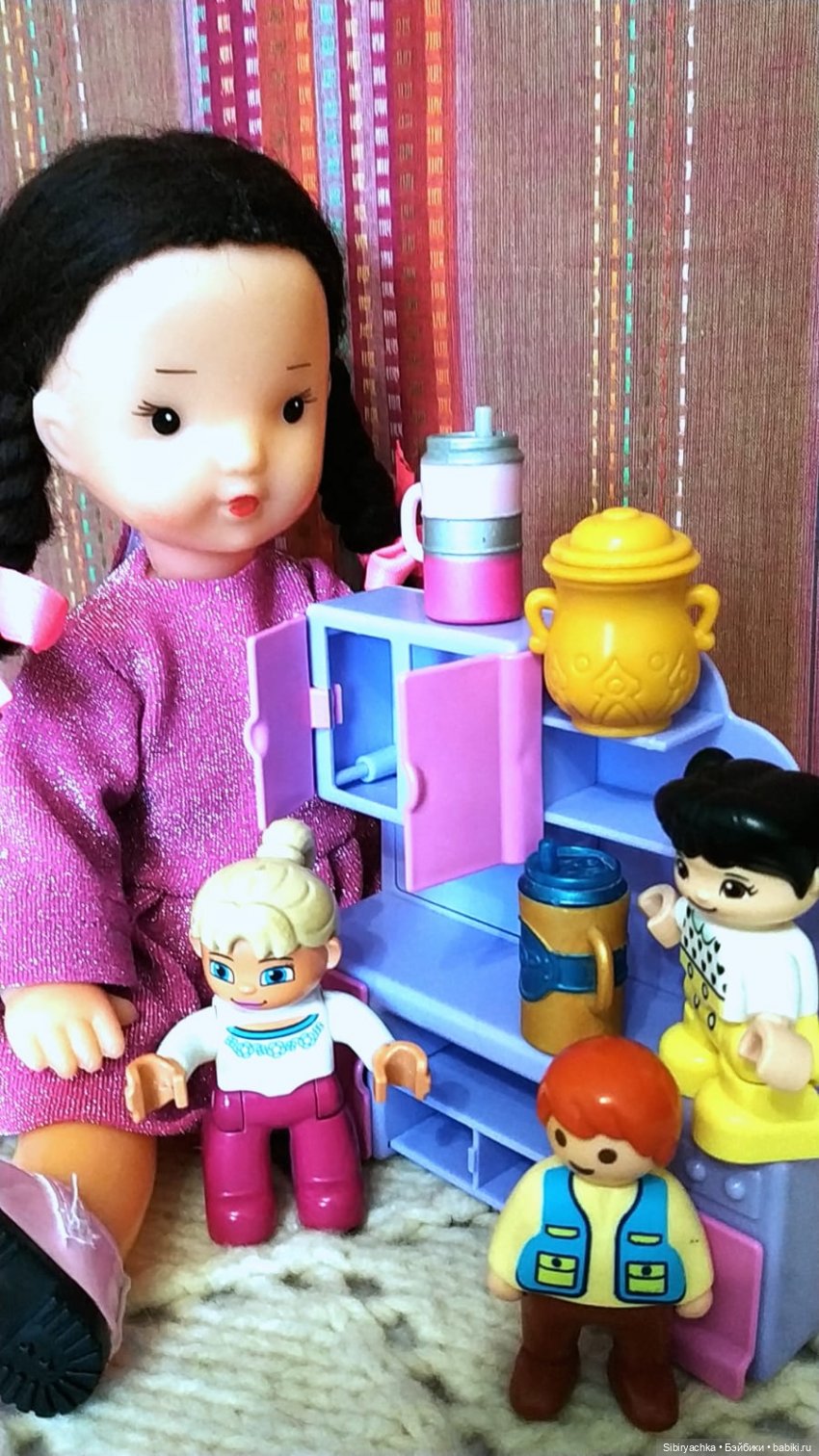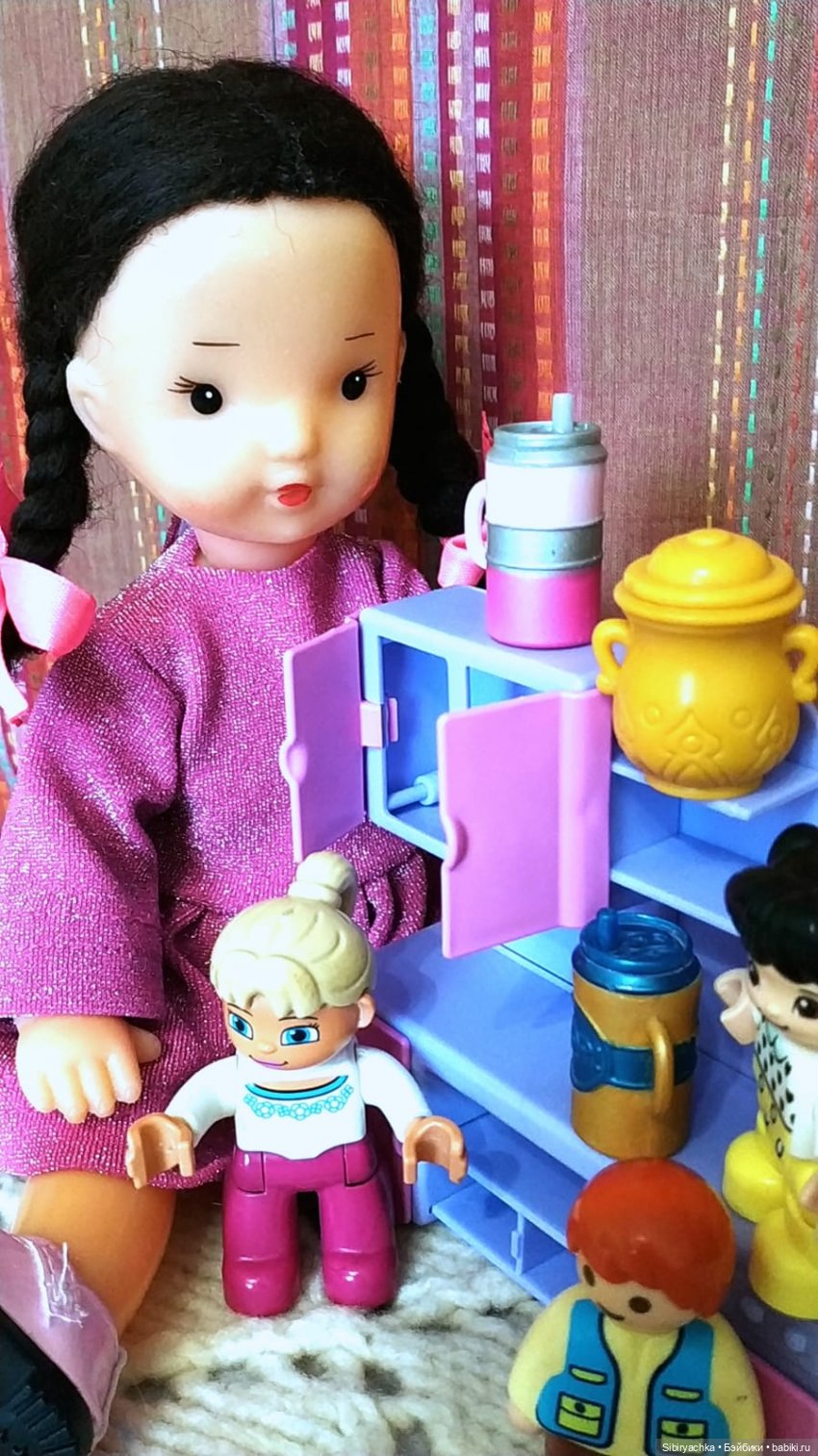 Юляшка с куклами наводили порядок в кукольном шкафу.