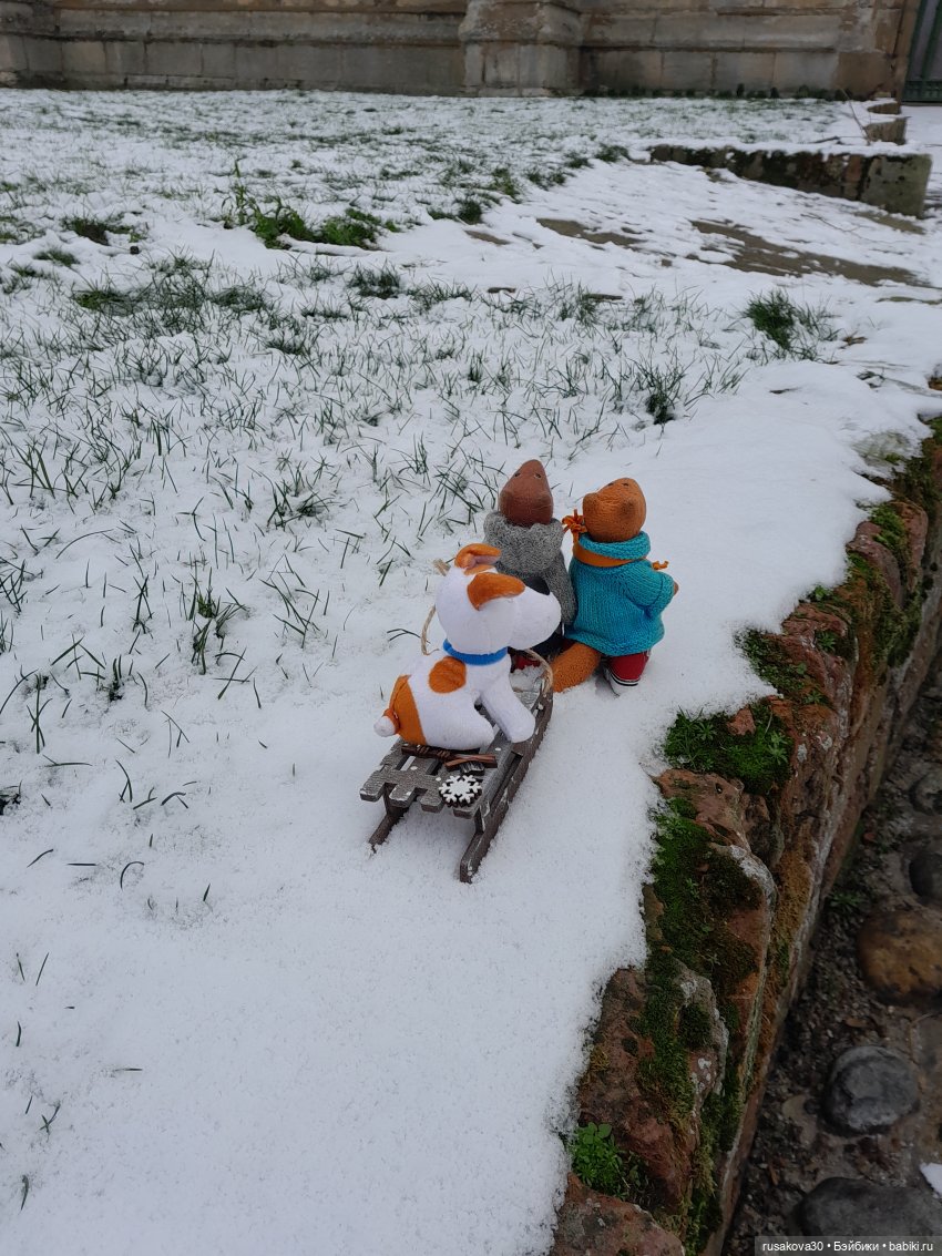 Любуюсь вашими лисятами! Так трогательно они везут собачку на саночках!