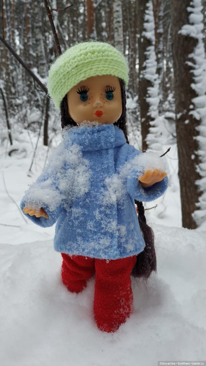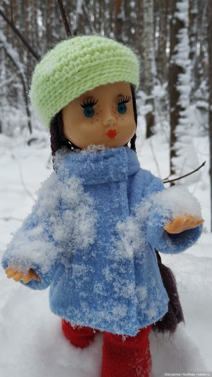 Юляшка выше Веты на три см. Кажется, не такая большая разница в росте. Кроме того, Юляшка значительно упитаннее новой подружки. Юляшка с радостью согласилась поделиться своими тёплыми нарядами с Ветой. С большим трудом нарядили Вету и отправились в лес. Первый раз я взяла её в лес одну.