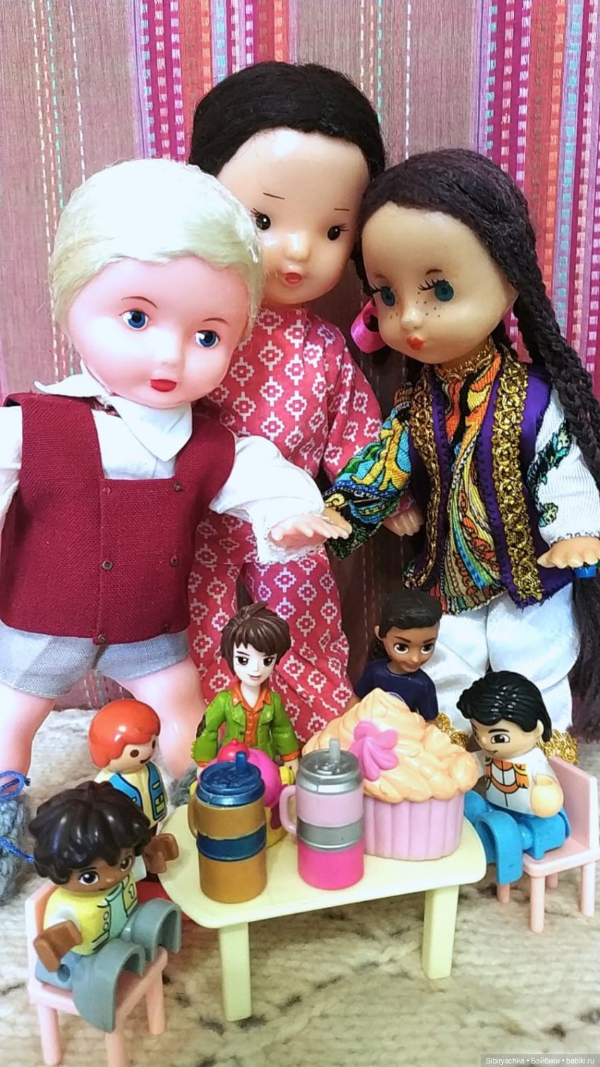 Юри решил сначала устроить куклам вкусный и полезный перекус. Куклы-малыши послушно сели за стол и ждали, чем их сегодня накормят.