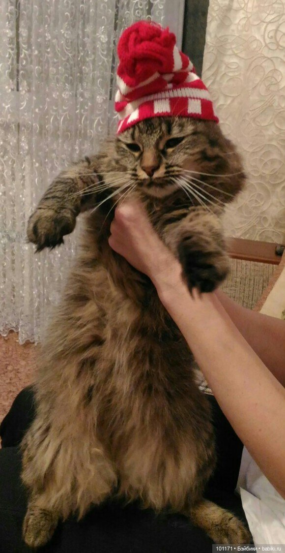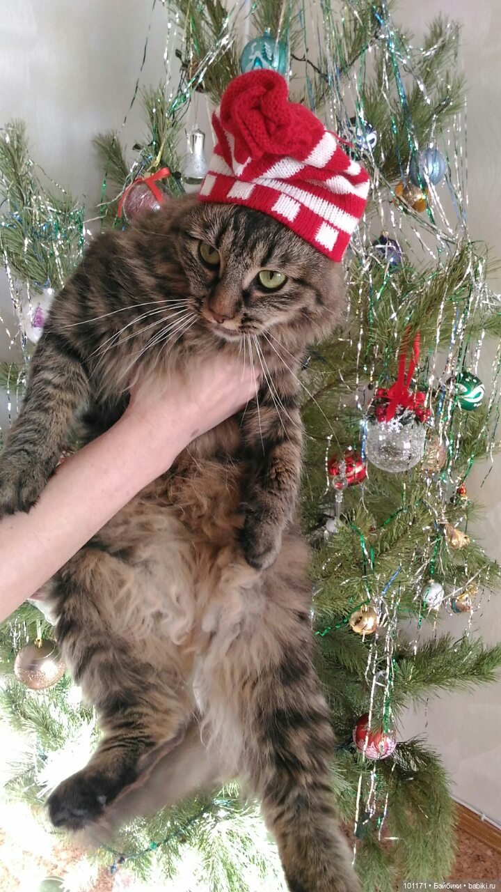 Милый уютный котик — почти ровесник Деду Морозу и живет на елках уже около 50 лет)