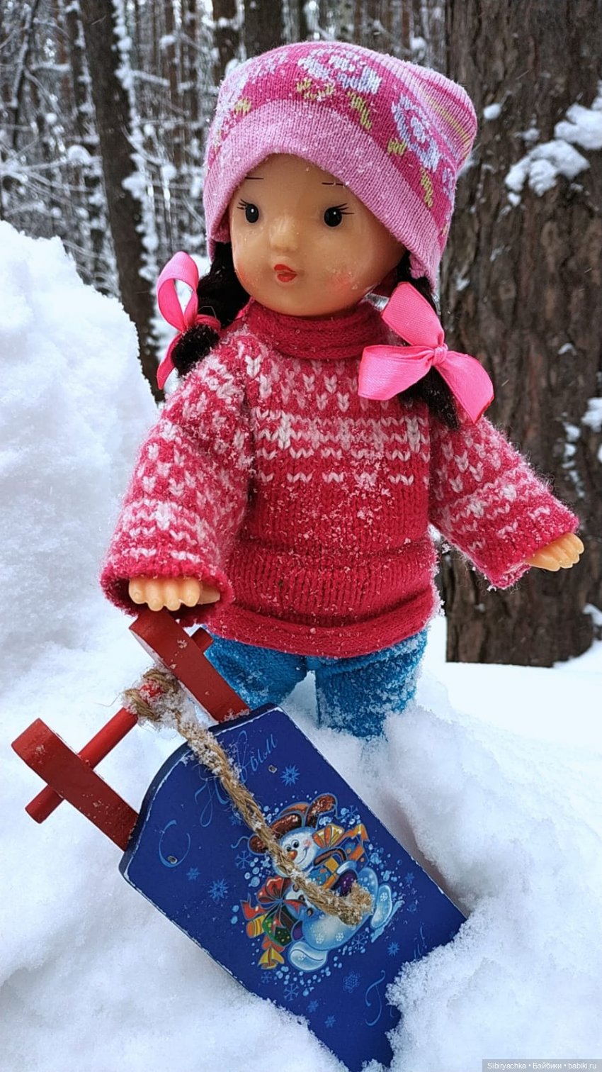 Санки служили отличной опорой, помогающей Юляшке сохранять равновесие.