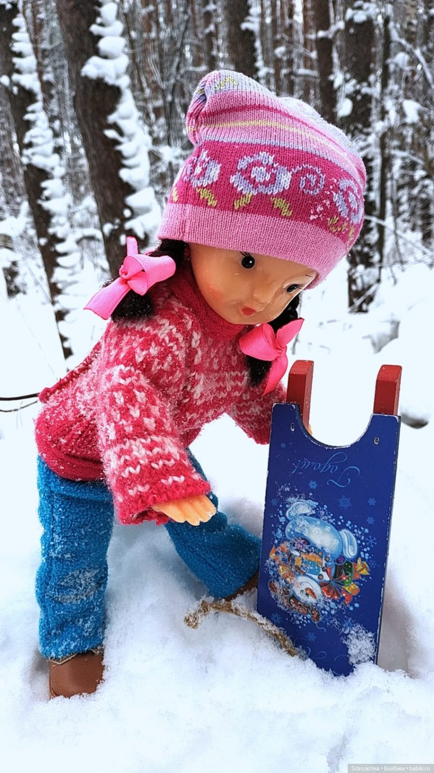 Иногда санки основательно застревали в снегу и тогда Юляшка превращалась в настоящего акробата, стараясь их извлечь из снежного плена.