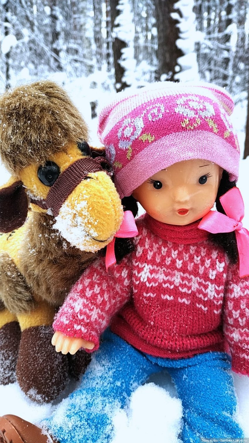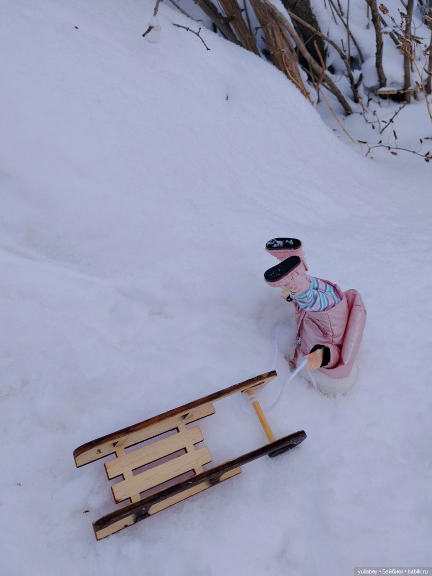 Совершенно неожиданно для нас Юляшка нашла нового друга в лесу, а вышли просто прогуляться с санками.