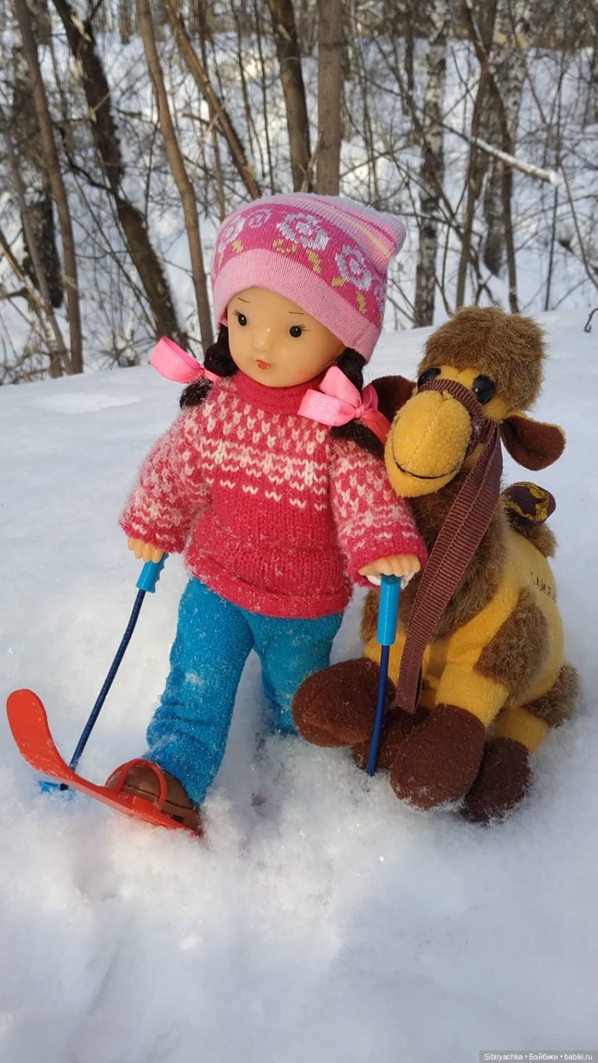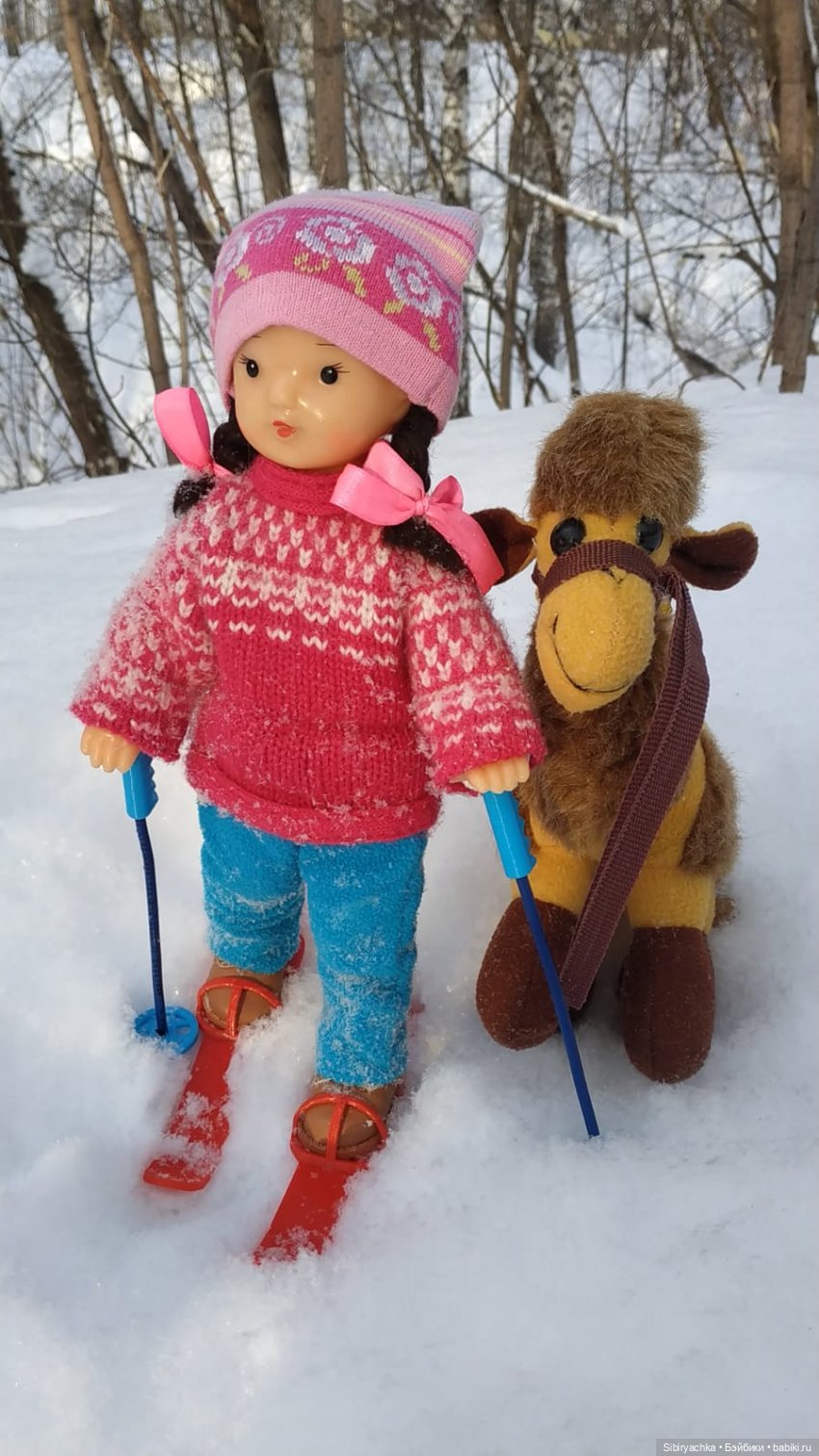 Катание верхом на верблюде, да ещё с лыжами и палками — непривычное зрелище для Сибири!