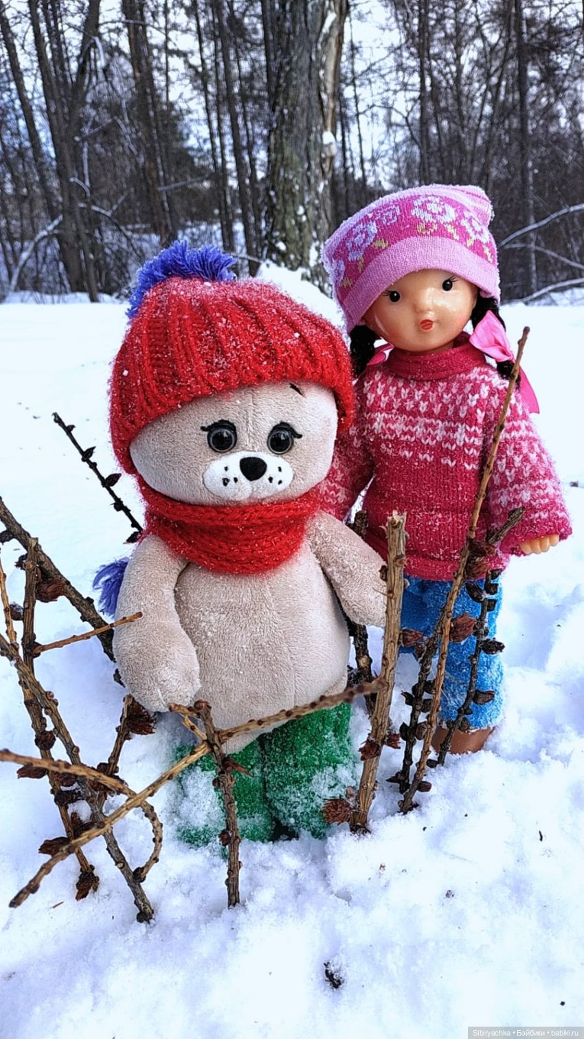 Юляшка отвлеклась на минутку, а Сеня нашёл обледевшую веточку и решил попробовать её на вкус.