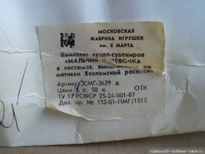 Сделаны куклы на фабрике 8 марта.