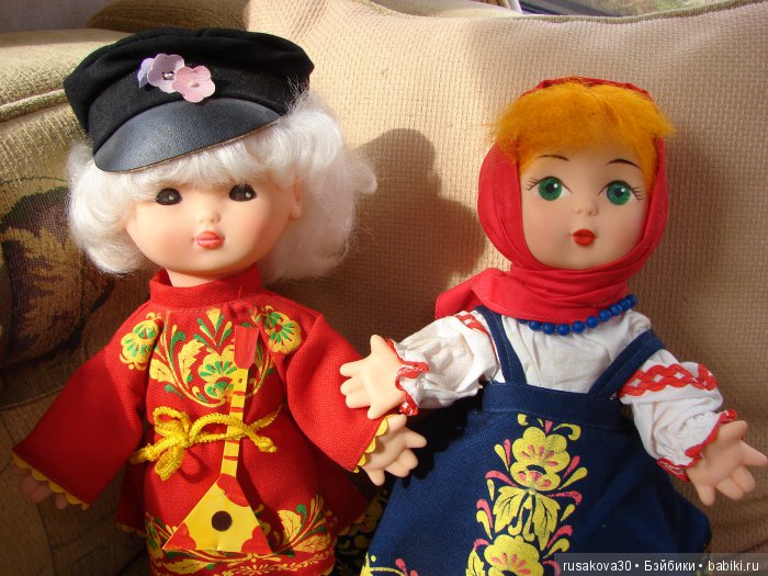 Оказалось, что в далеком СССР выпускались куклы в костюмах с хохломскими узорами.