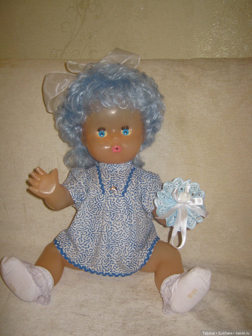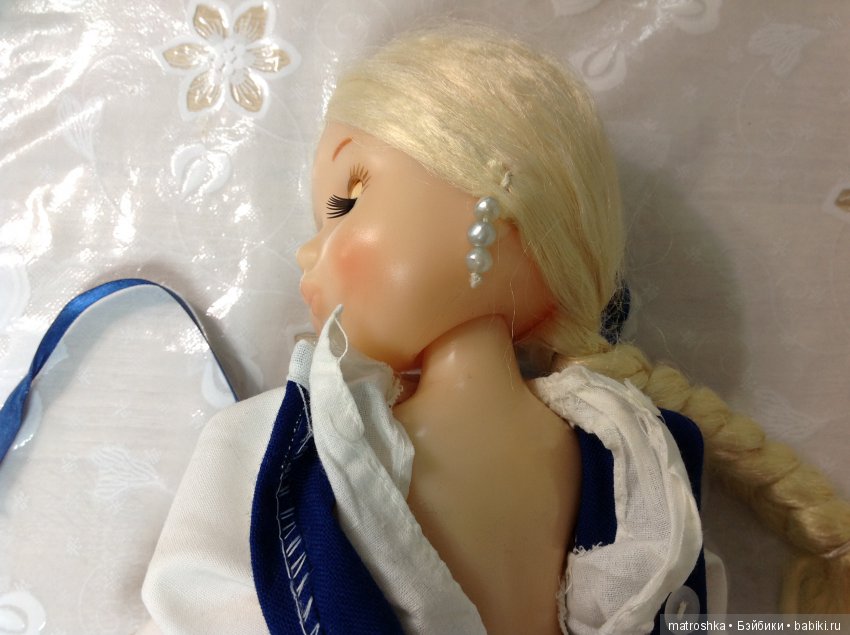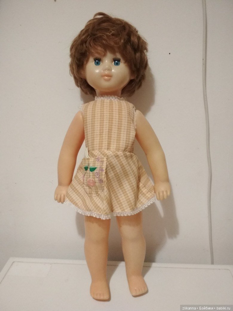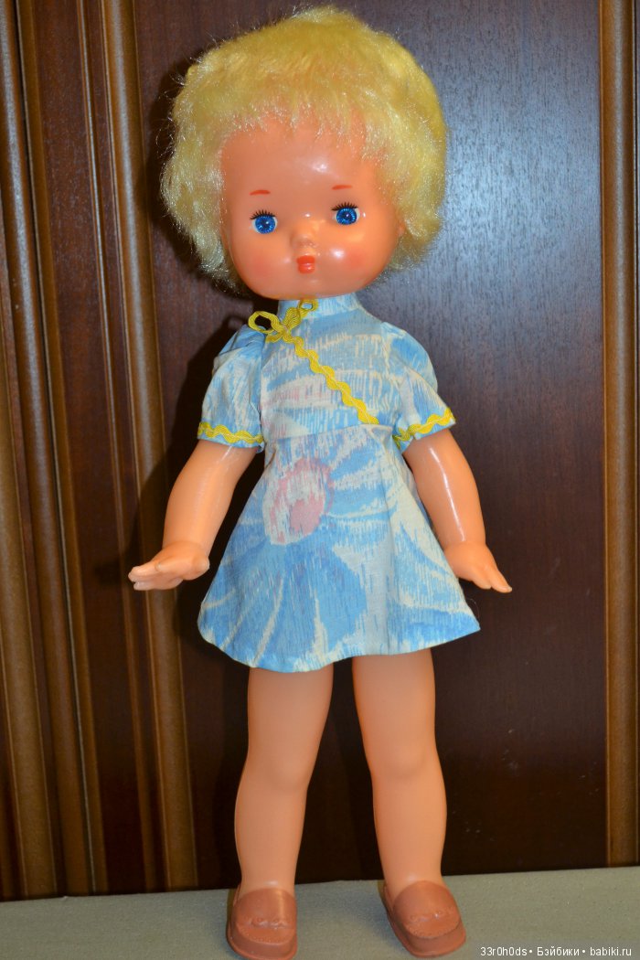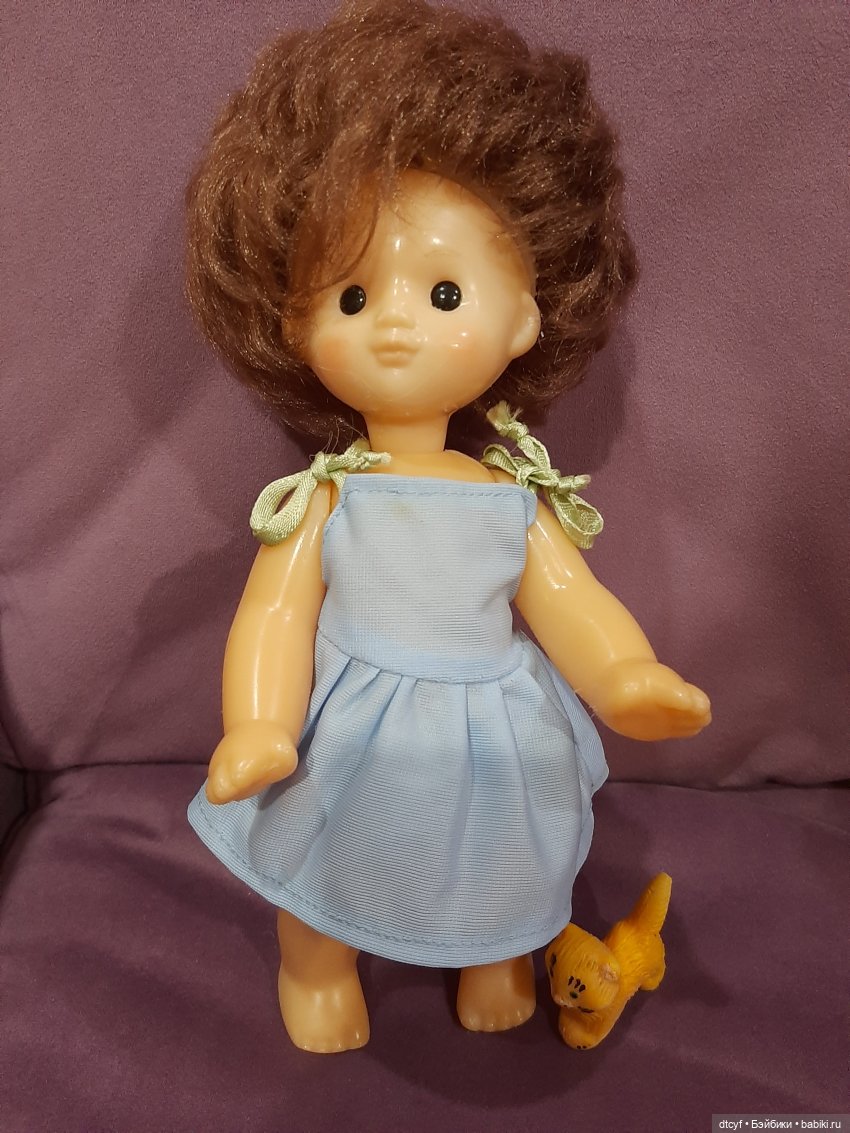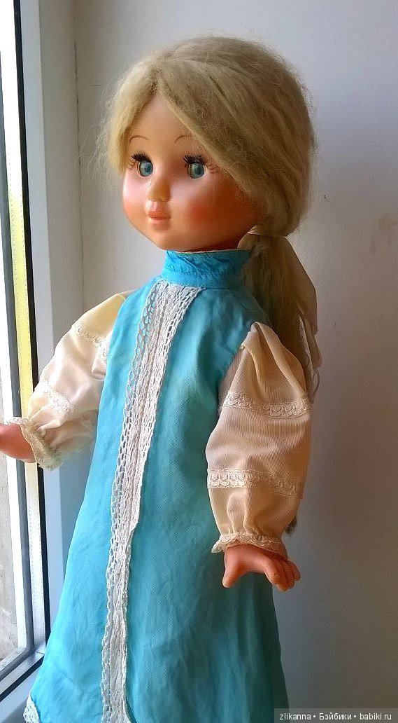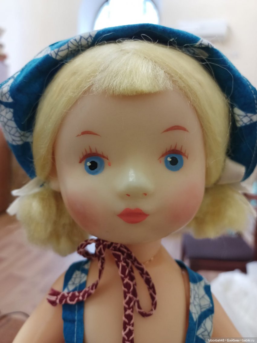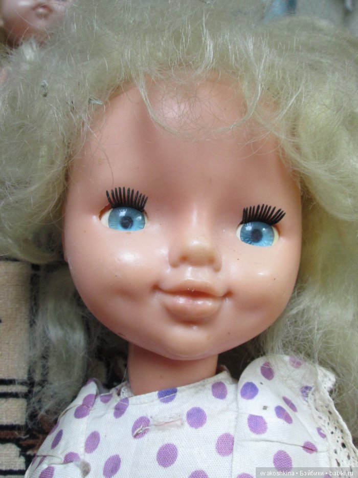 Тоже редкая кукла, произведена до 1972г., ф-ка «Венибе», Литовская СССР (с 1972г. вошла в состав ПО «Неринга». Имя по каталогу Аудроне (ветерок), всё в оригинале, рост куклы 42 см., волос очень нравится: