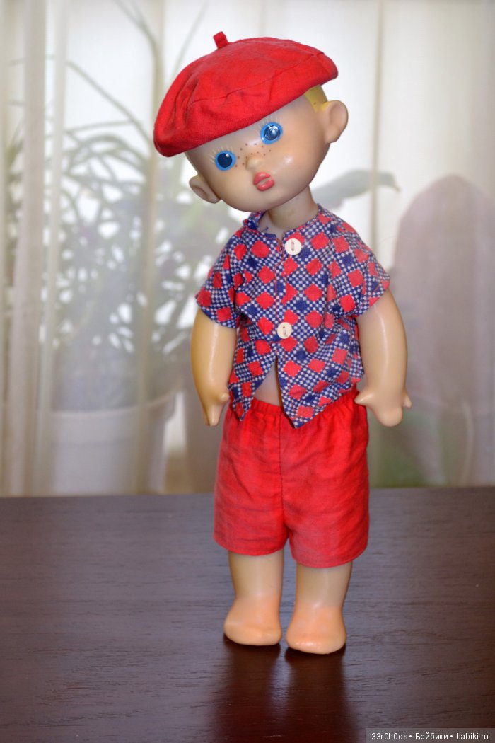 и не могу не показать опилочных. В синем костюме мальчик Слава, это мамина кукла 1963 года, рядом девочка все родное, кроме обувки, опилочная, есть рабочая голосовая коробка на шнурке. рыжик тоже опилочная СССР одежда родная, кроме обуви, ее я подобрала под носочки:))) тоже есть голосок рабочий на шнурке.