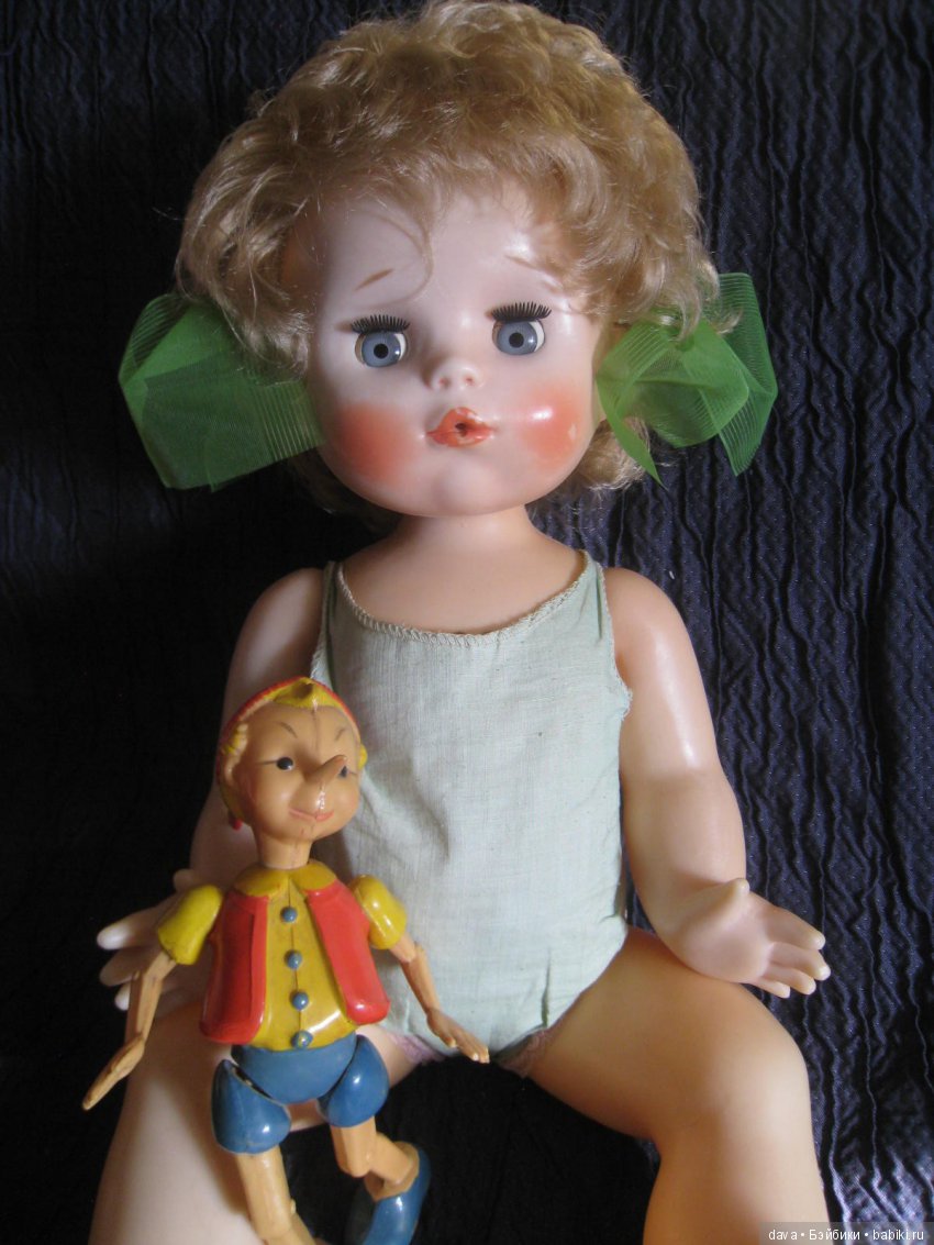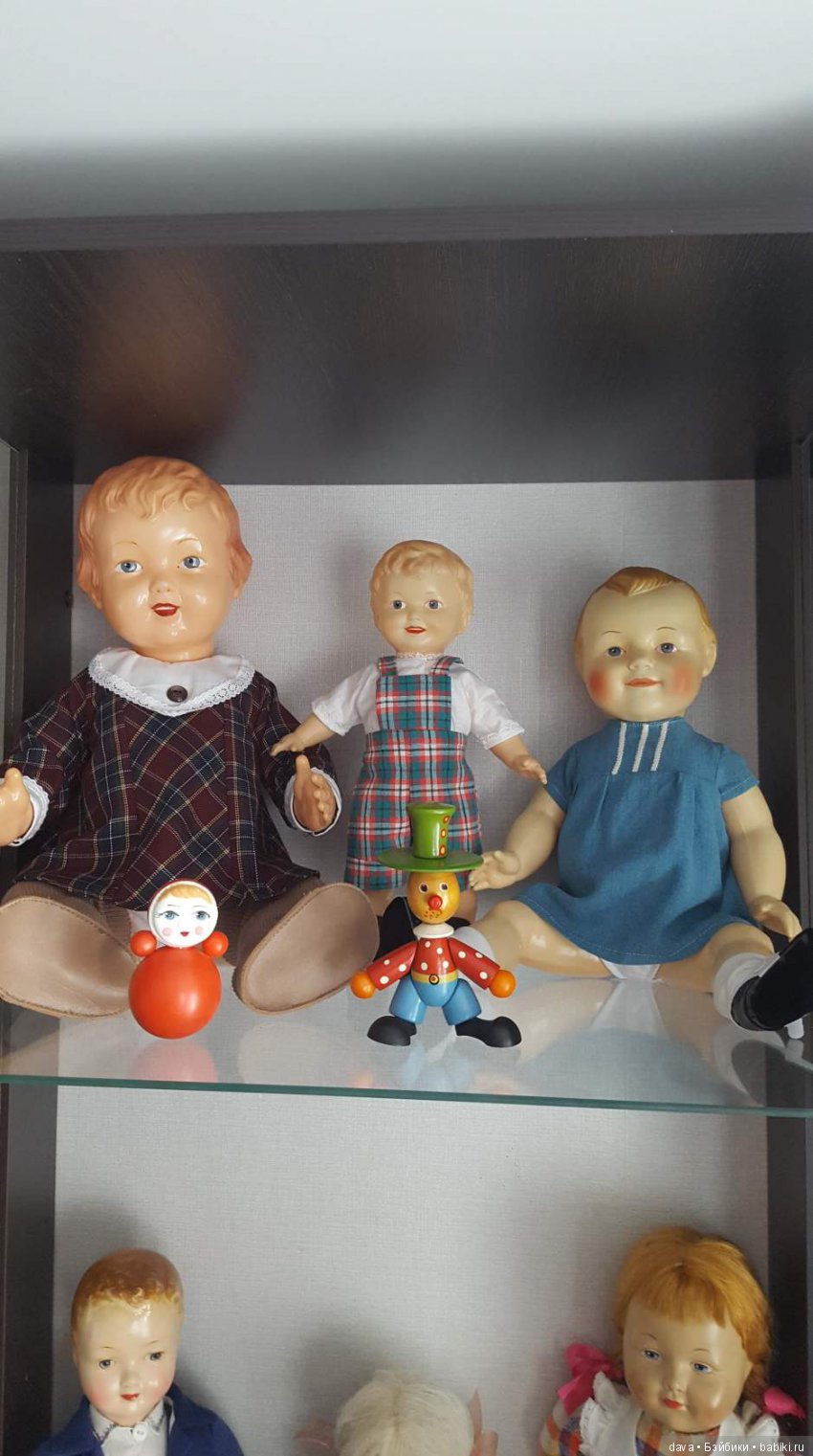 Я же покажу своих кукол, которых не считаю редкими. Однако считаю их не часто встречающимися или интересными, не исключая Буратино с клеймом «слоник»-часто вижу в продаже. А если что не верно-поправьте меня. Всех показать долго, да и нет смысла, хочется посмотреть ваших кукол.